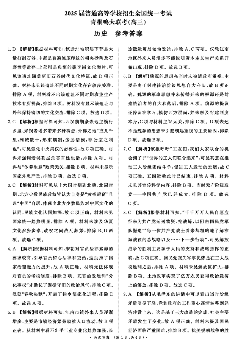 河南青桐鸣大联考2025届高三下学期3月月考历史考试已于近日开考,为方便考生考后及时查看考试情况,查漏补缺、弥补不足,本文整理了试题答案解析相关信息!