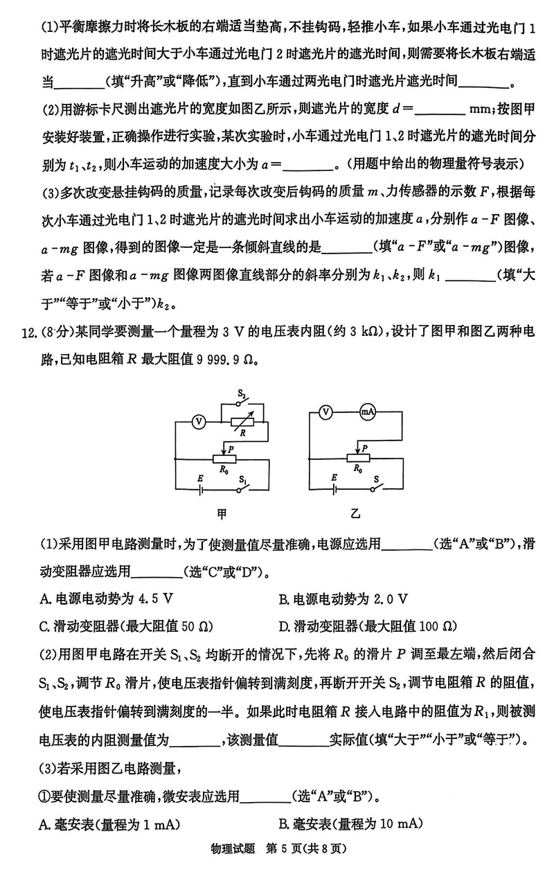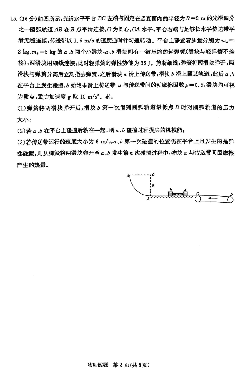 河南青桐鸣大联考2025届高三下学期3月月考物理试题及答案