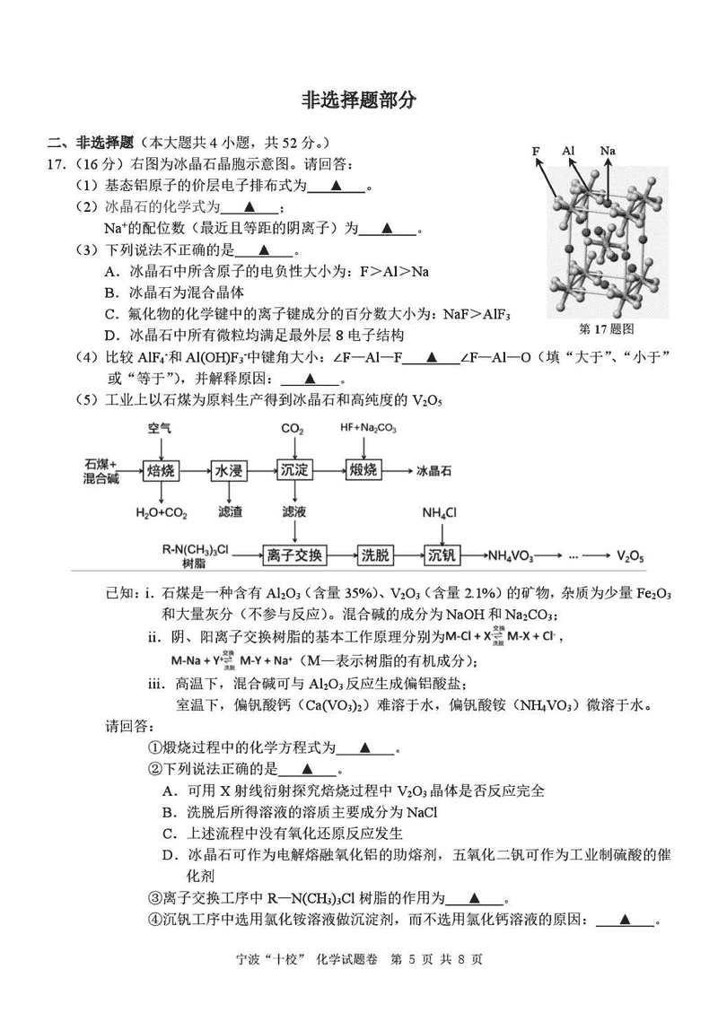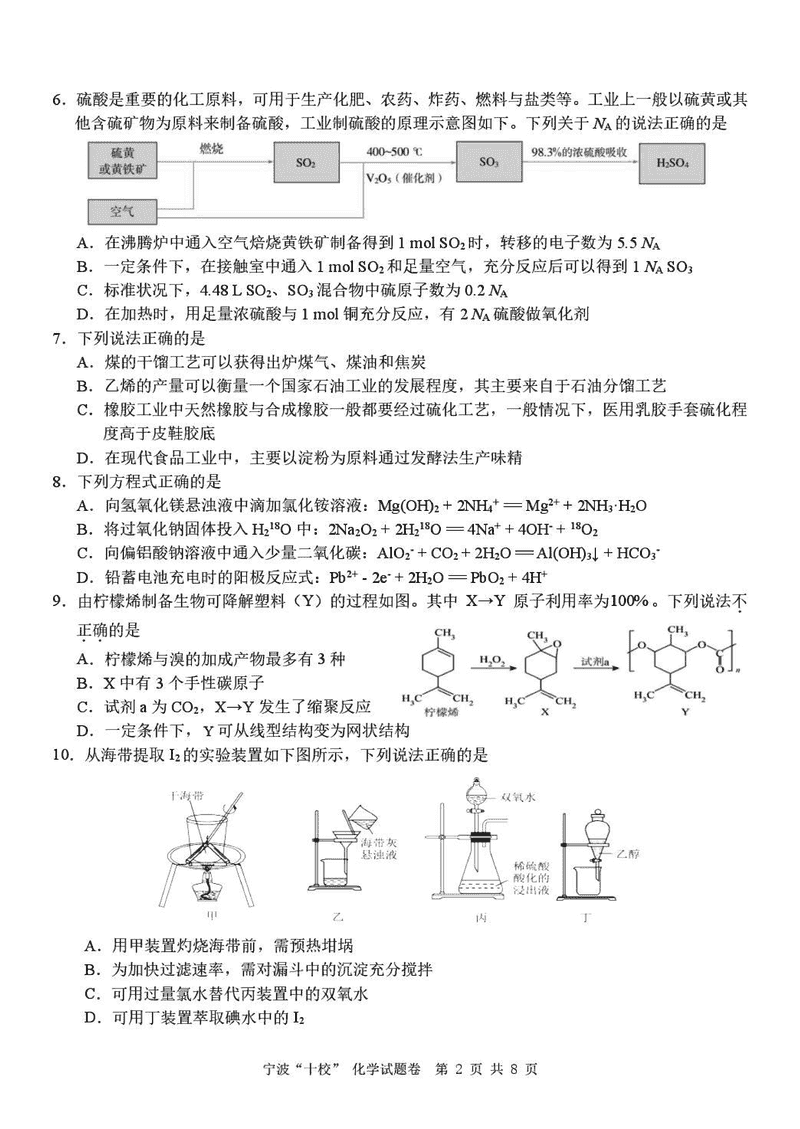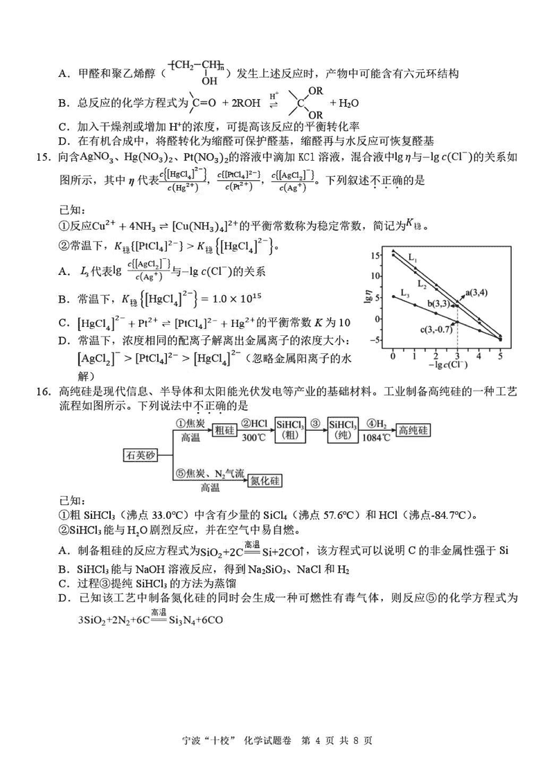 宁波十校2025届高三3月联考化学试题及答案 时间:2025-03-15 浙江 理综试题 宁波十校2025届高三3月联考化学考试已于近日开考,为方便考生考后及时查看考试情况,查漏补缺、弥补不足,本文整理了试题答案解析相关信息! 汇总:宁波十校2025届高三3月联考试题及答案汇总 化学试题及答案解析