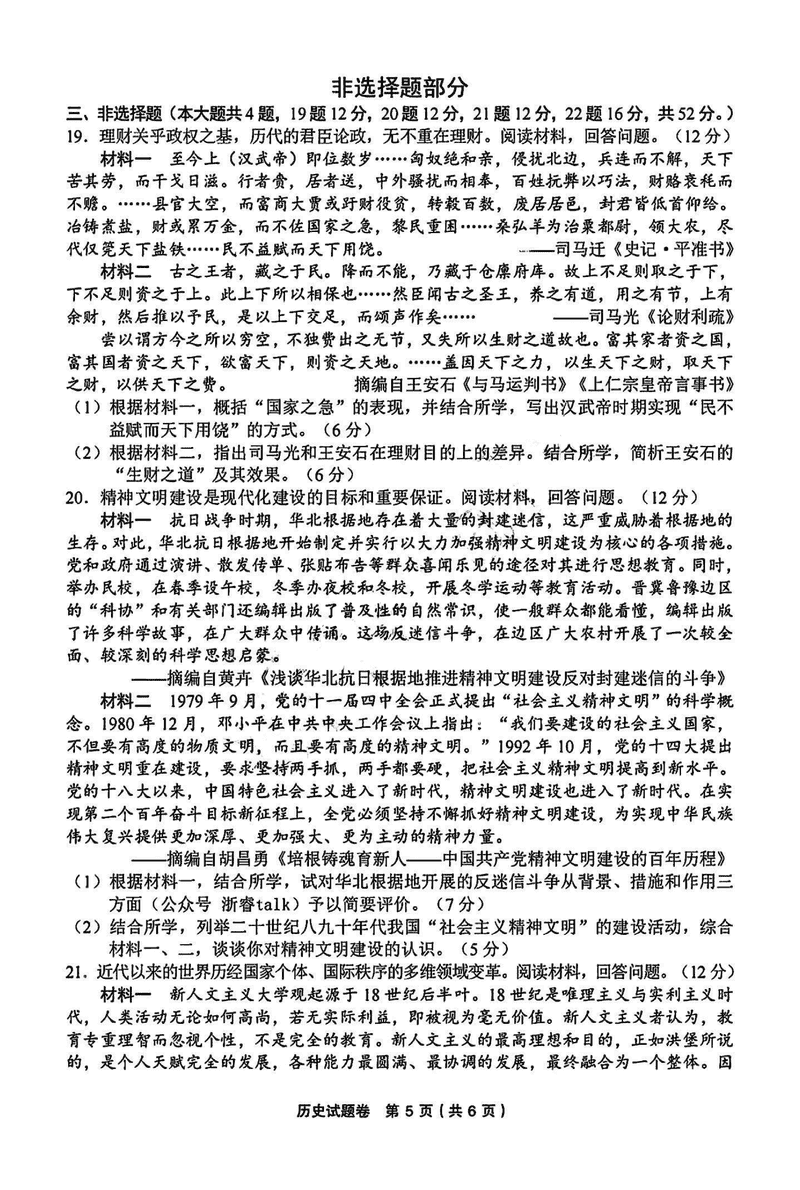 金丽衢十二校2025届高三第二次联考历史试题及答案