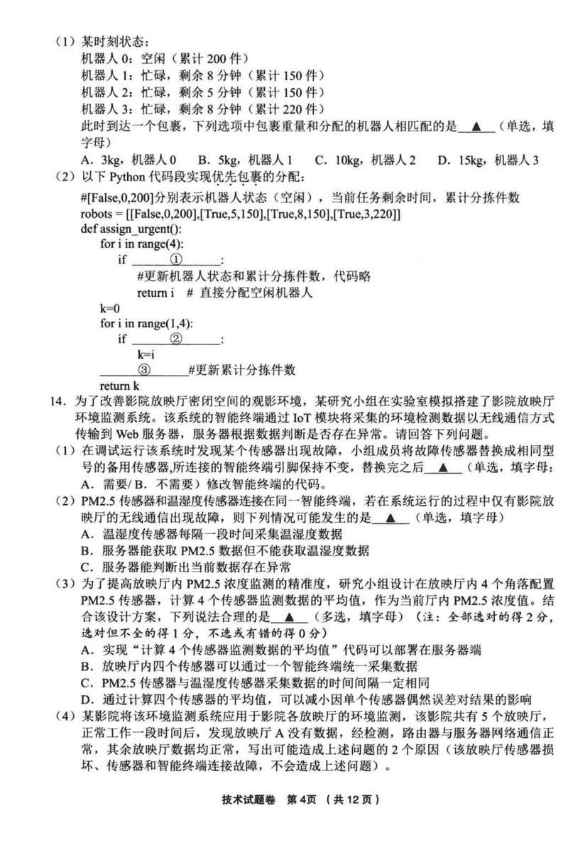 金丽衢十二校2025届高三第二次联考技术试题及答案
