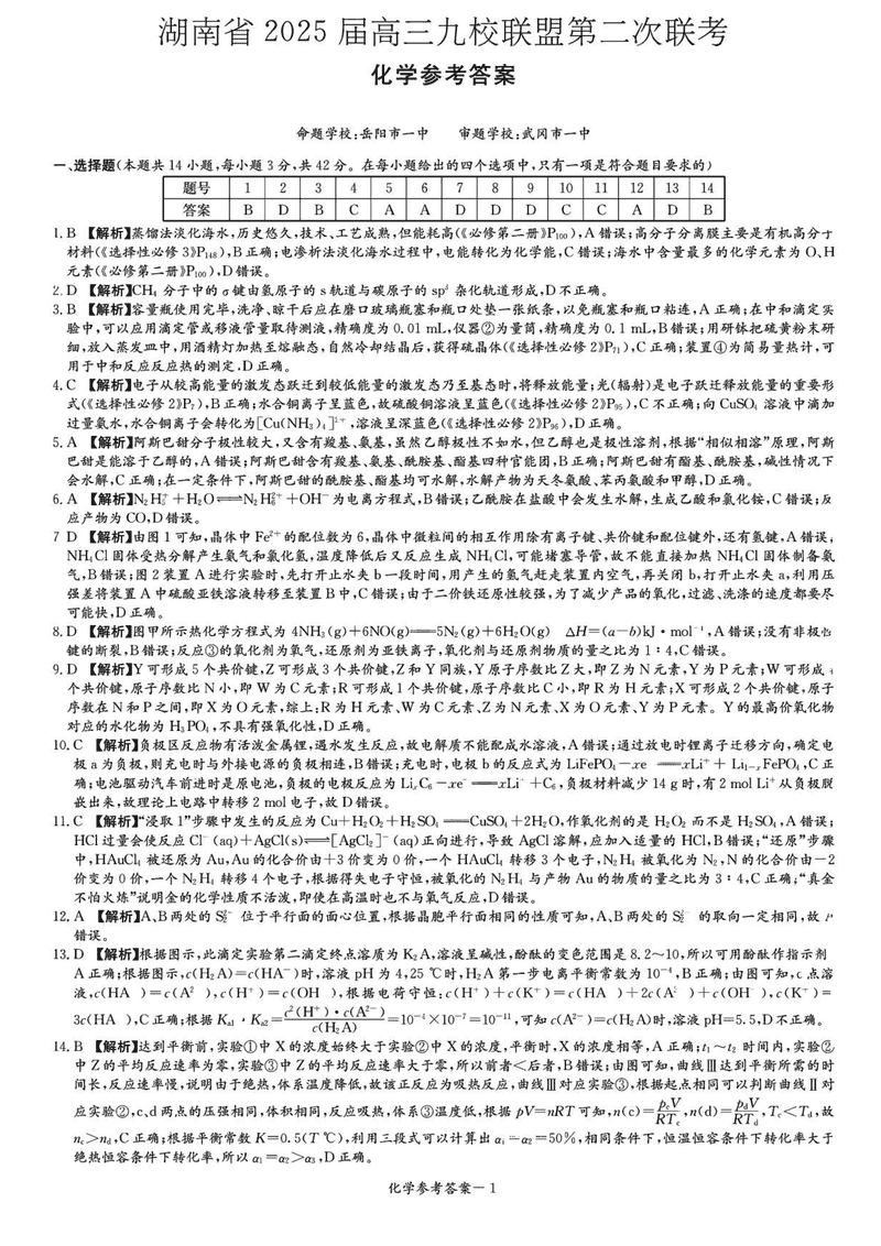 湖南省九校联盟2025届高三下学期第二次联考化学考试已于近日开考,为方便考生考后及时查看考试情况,查漏补缺、弥补不足,本文整理了试题答案解析相关信息!