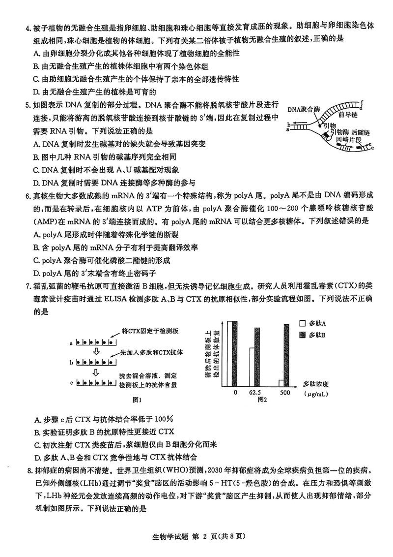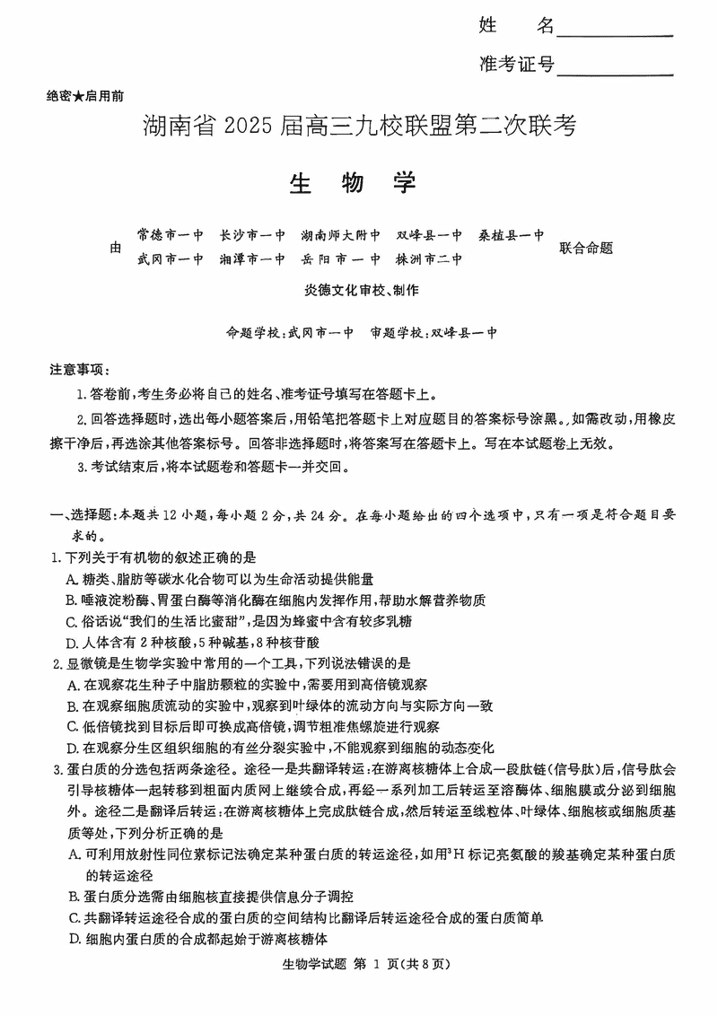 湖南省九校联盟2025届高三下学期第二次联考生物试题及答案