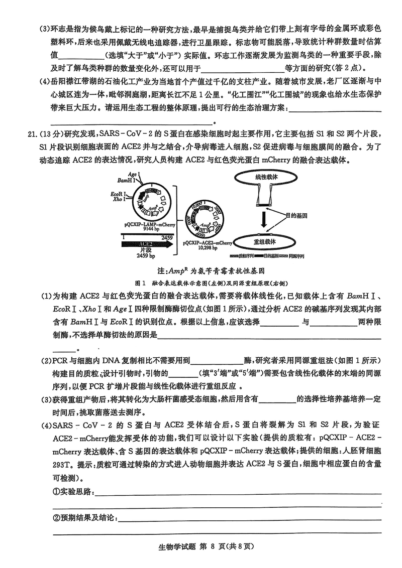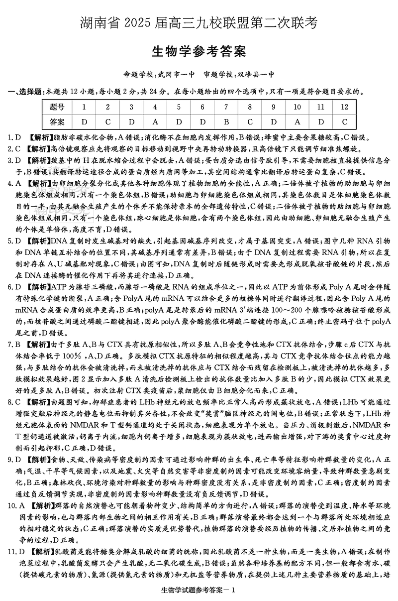 湖南省九校联盟2025届高三下学期第二次联考生物考试已于近日开考,为方便考生考后及时查看考试情况,查漏补缺、弥补不足,本文整理了试题答案解析相关信息!