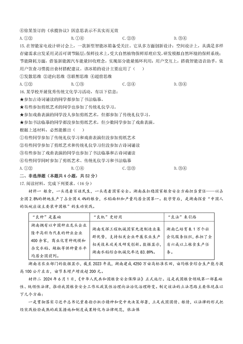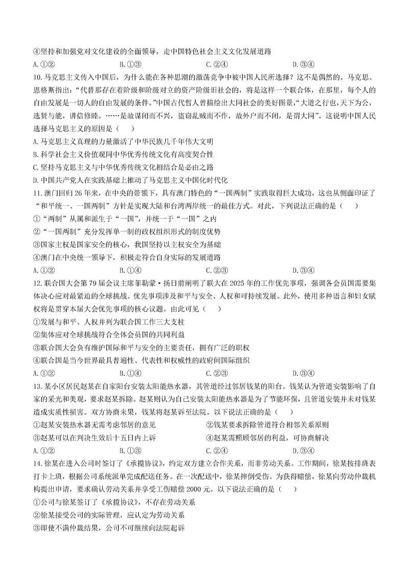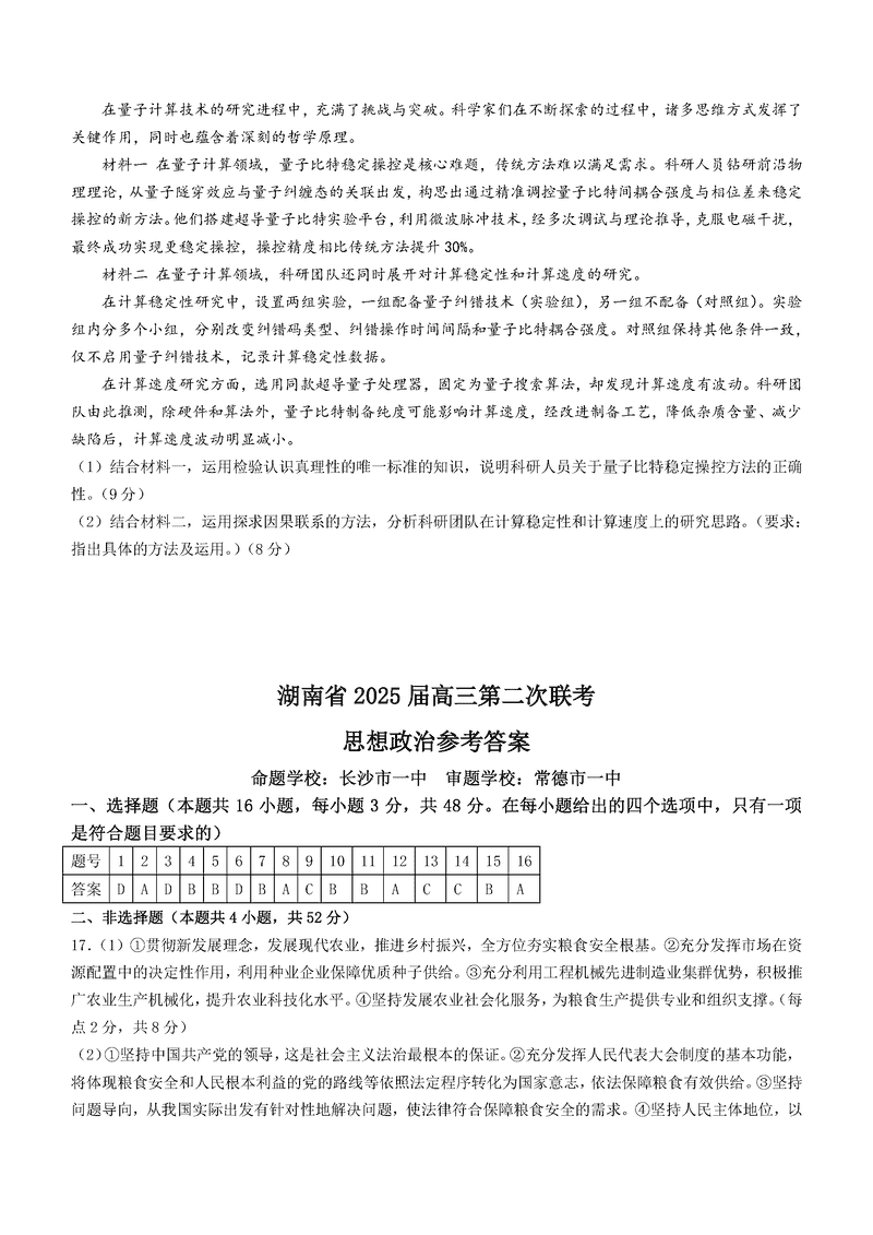 湖南省九校联盟2025届高三下学期第二次联考政治试题及答案