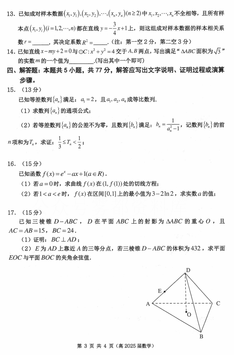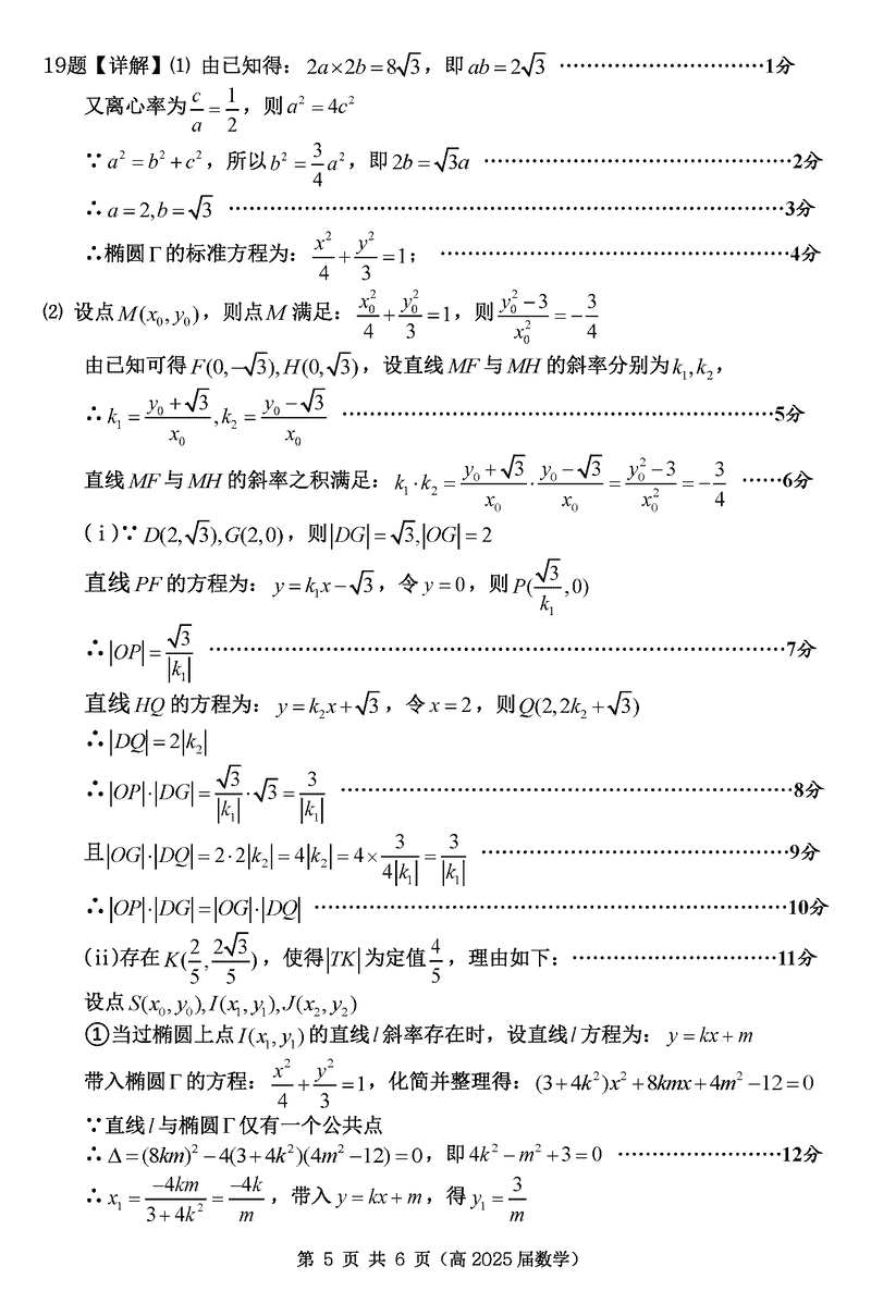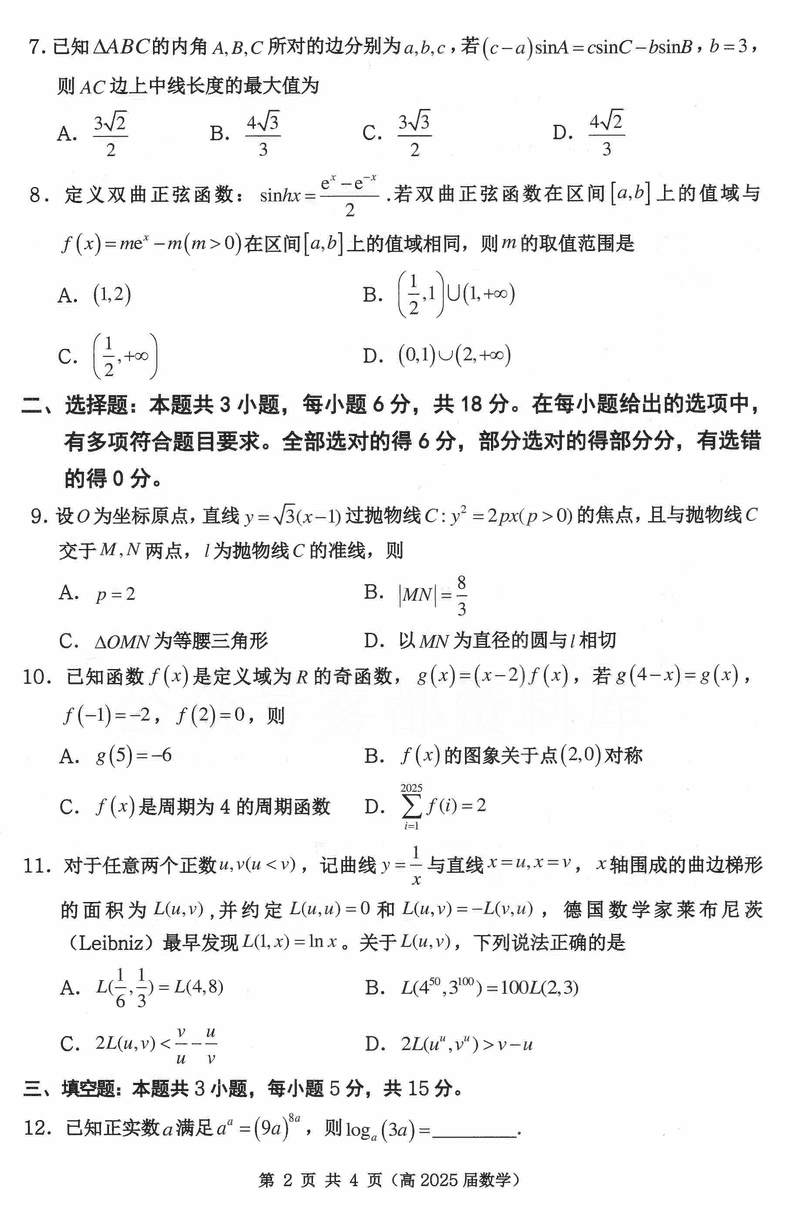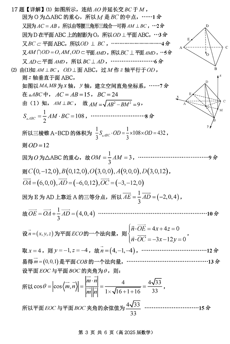 重庆名校联盟2024-2025学年度高三下第一次联考数学试题及答案