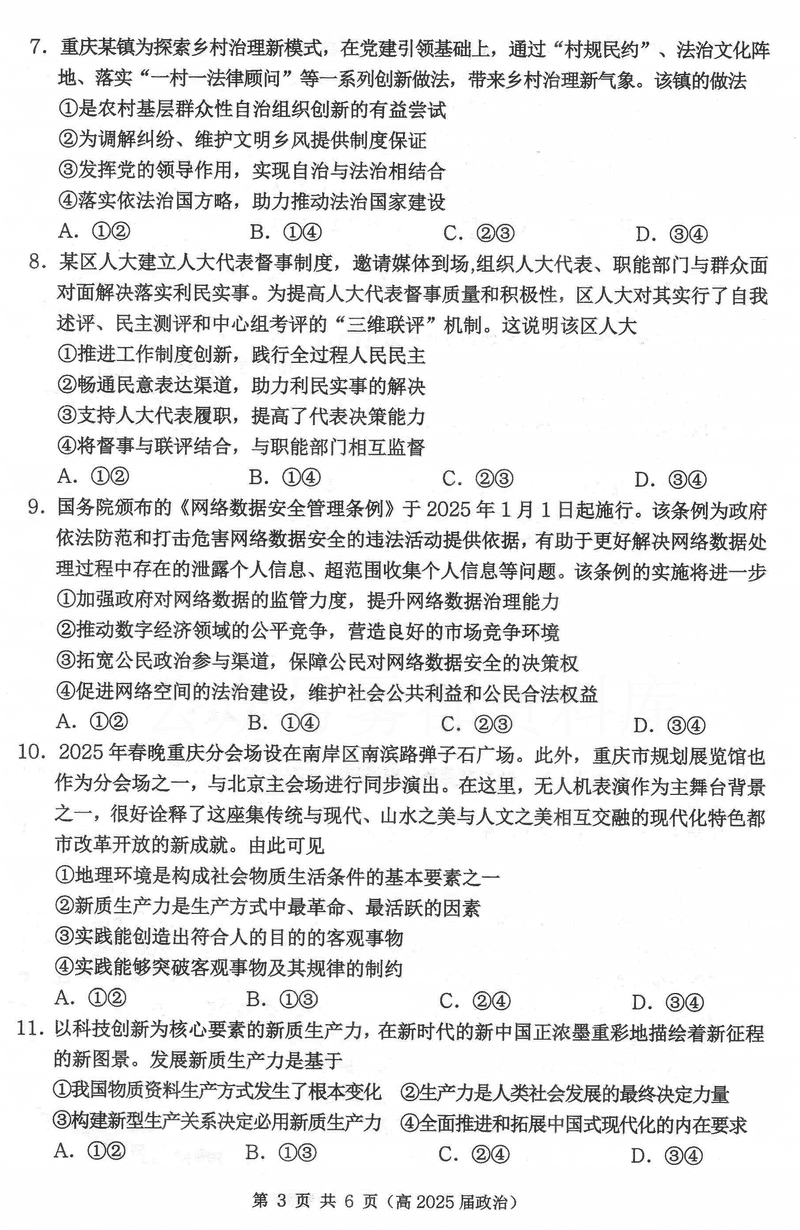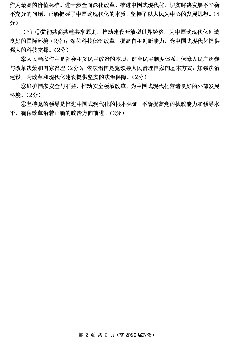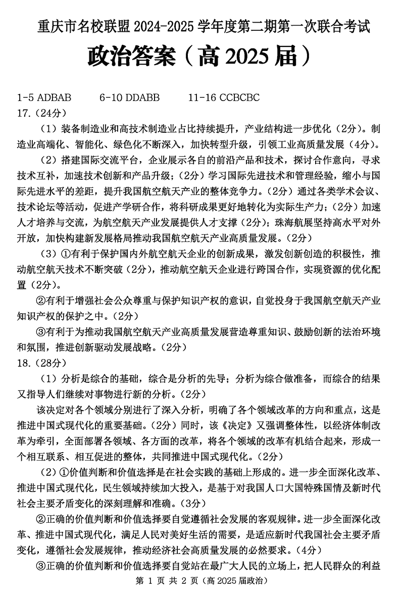 重庆名校联盟2024-2025学年度高三下第一次联考政治试题及答案