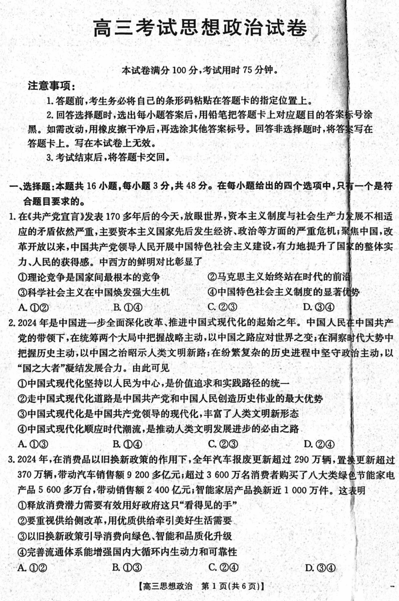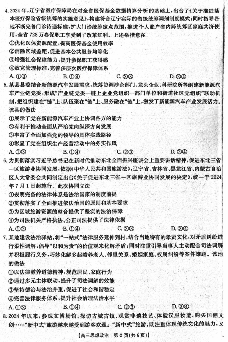 辽阳市2025届高三下学期一模政治试题及答案 时间:2025-03-20 辽宁 文综试题 辽阳市2025届高三下学期一模政治考试已于近日开考,为方便考生考后及时查看考试情况,查漏补缺、弥补不足,本文整理了试题答案解析相关信息! 汇总:辽阳市2025届高三下学期一模试题及答案汇总 政治试题及答案解析