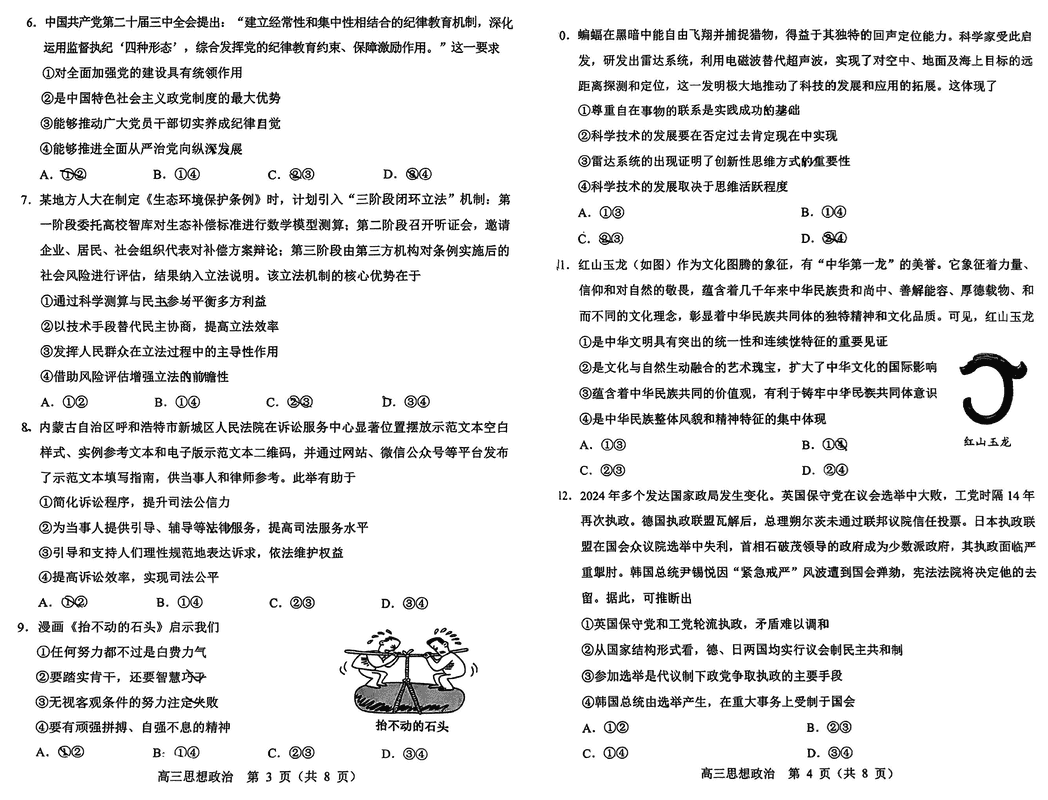 赤峰二模2025届高三下学期3·20模考政治试题及答案