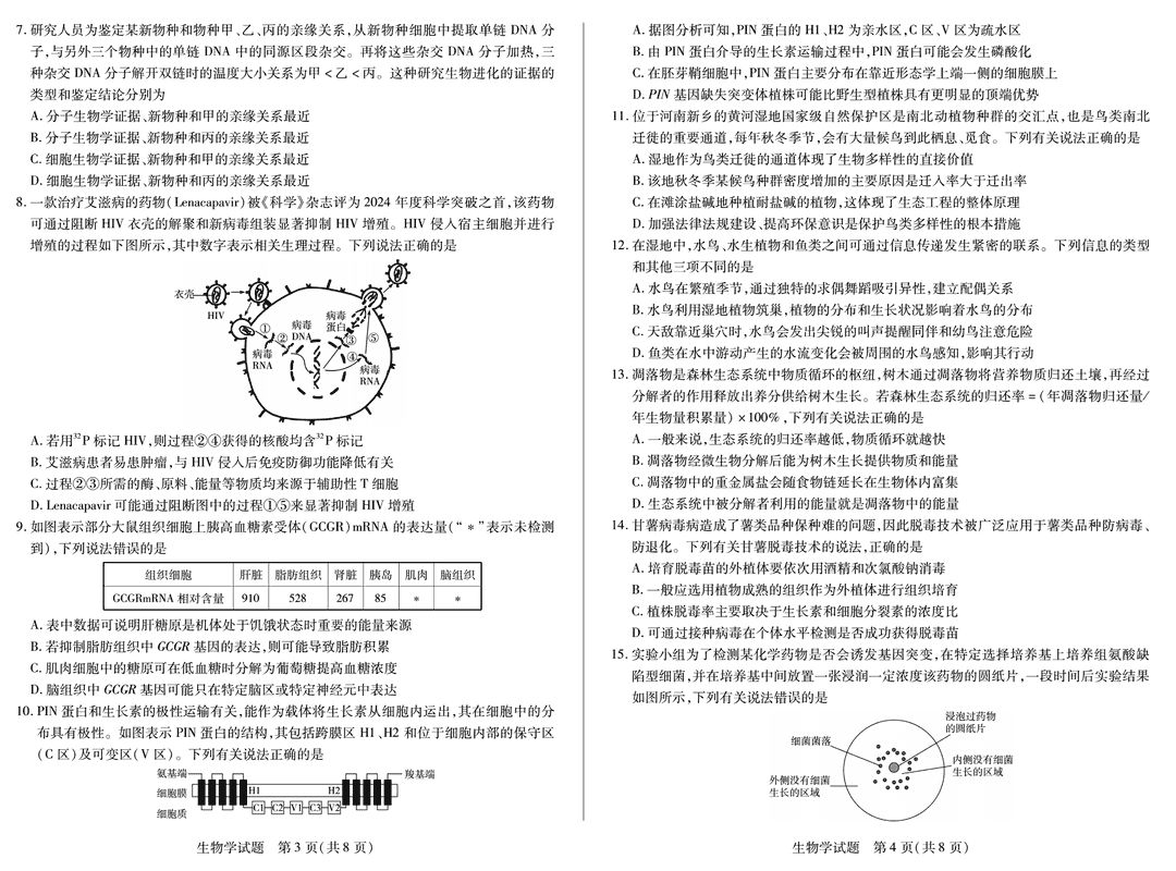 河南省天一大联考2024-2025学年高三阶段性测试(六)生物试题及答案