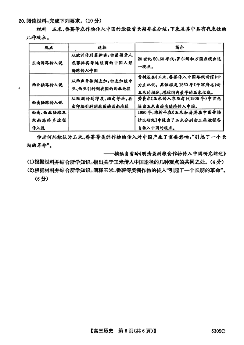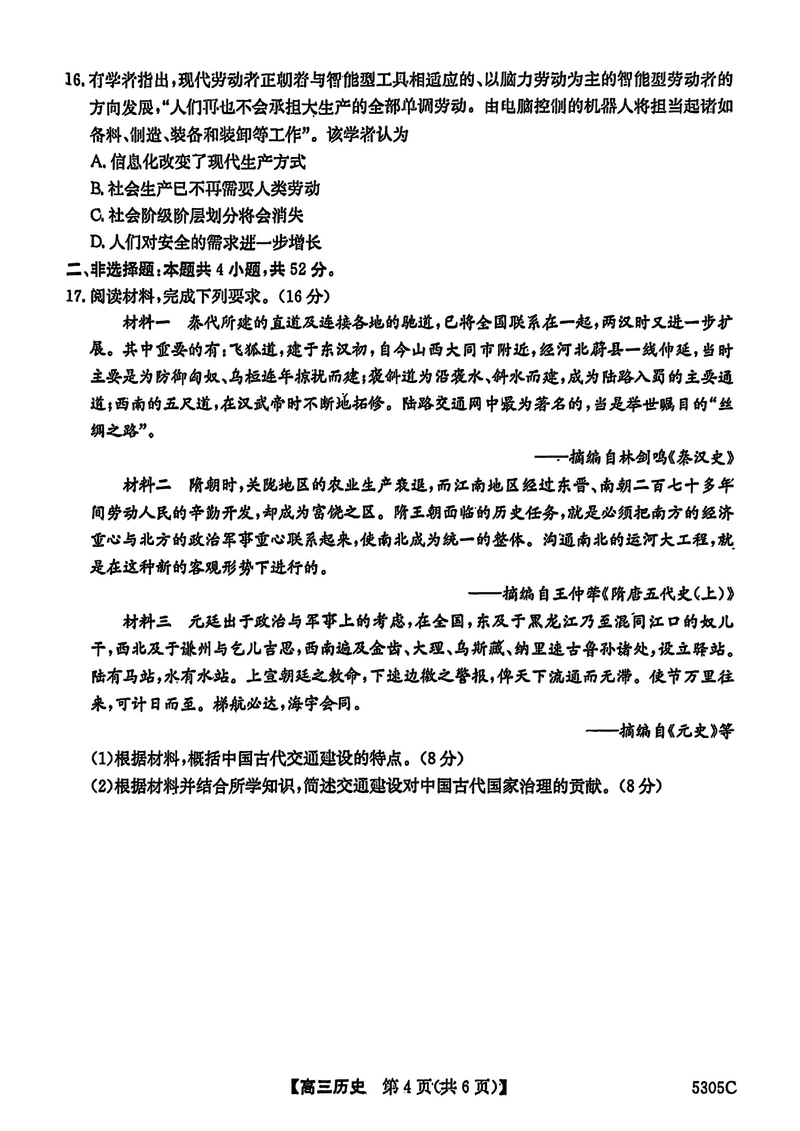 南宁二模2025届高三第二次适应性测试历史试题及答案