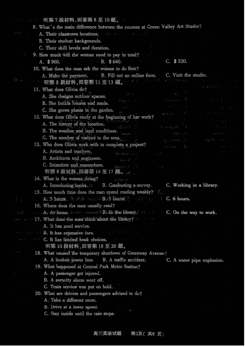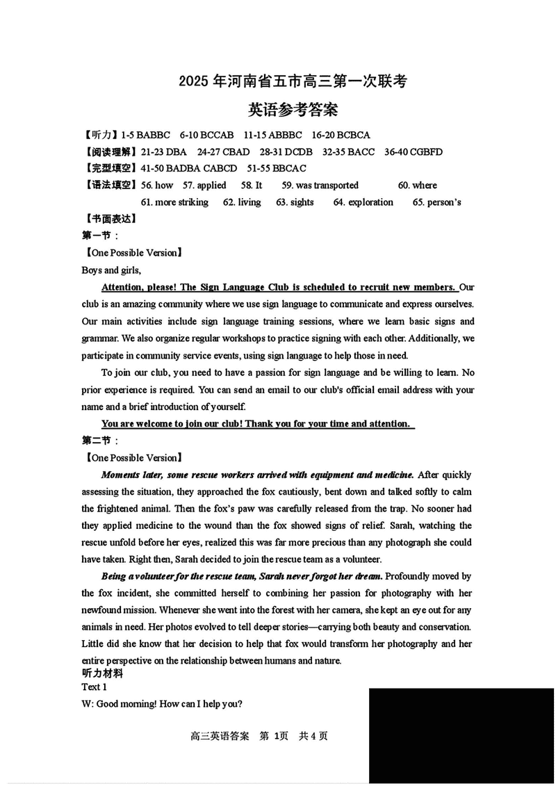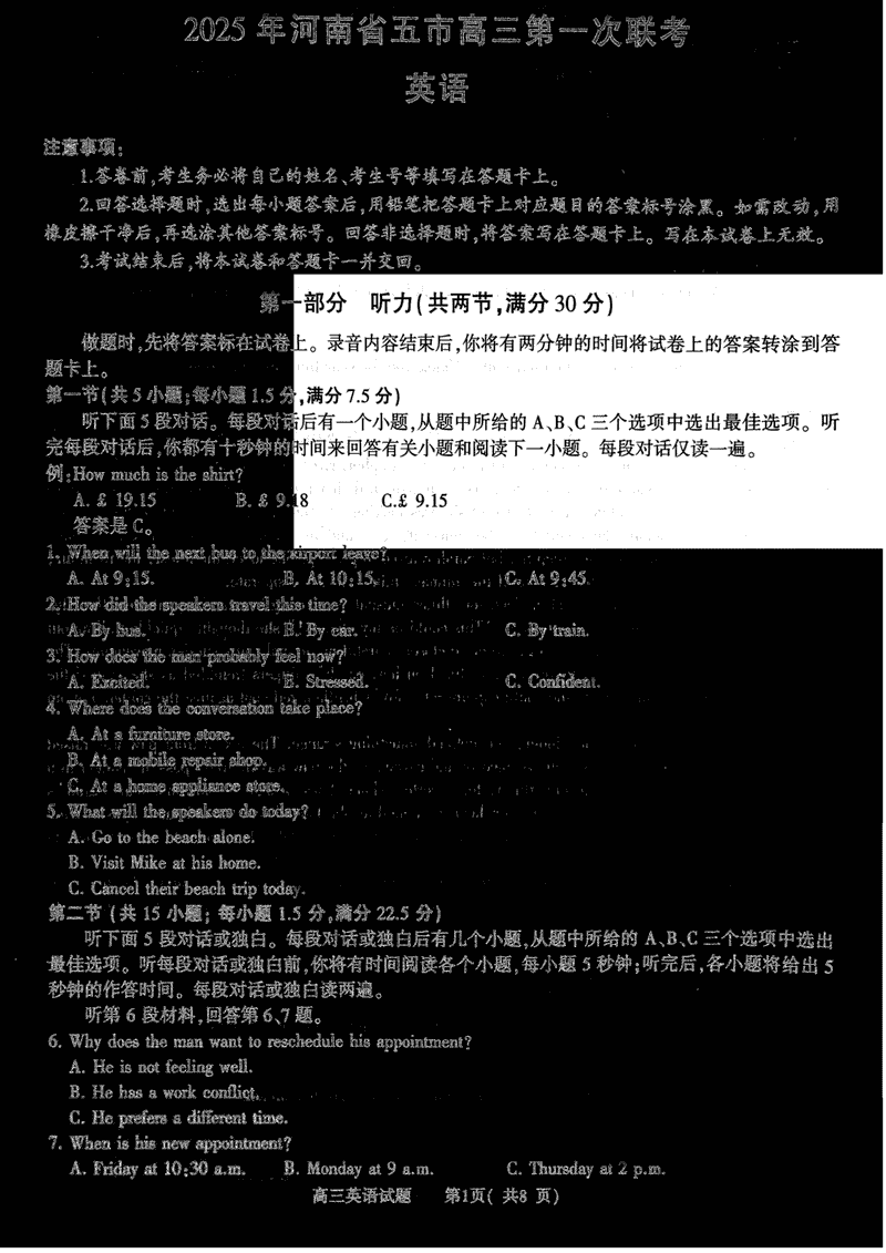 河南五市一模2025年高三第一次联考英语试题及答案