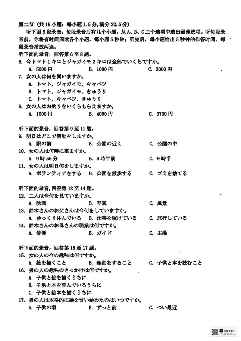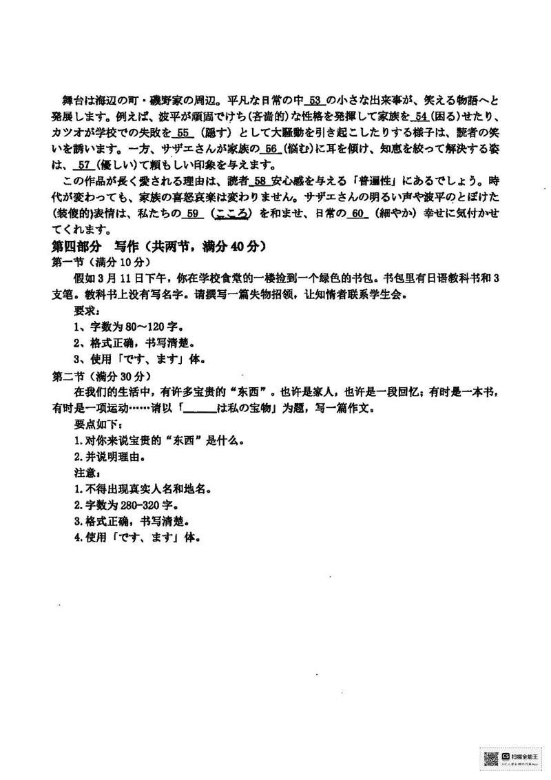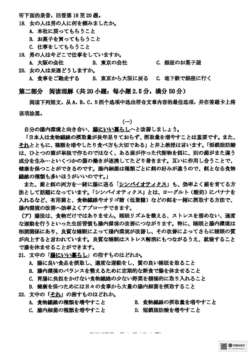 温州市2025届高三下学3月二模日语试题及答案 时间:2025-03-24 英语试题 温州市2025届高三下学3月二模日语考试已于近日开考,为方便考生考后及时查看考试情况,查漏补缺、弥补不足,本文整理了试题答案解析相关信息! 汇总:温州市2025届高三下学3月二模试题及答案汇总 日语试题及答案解析