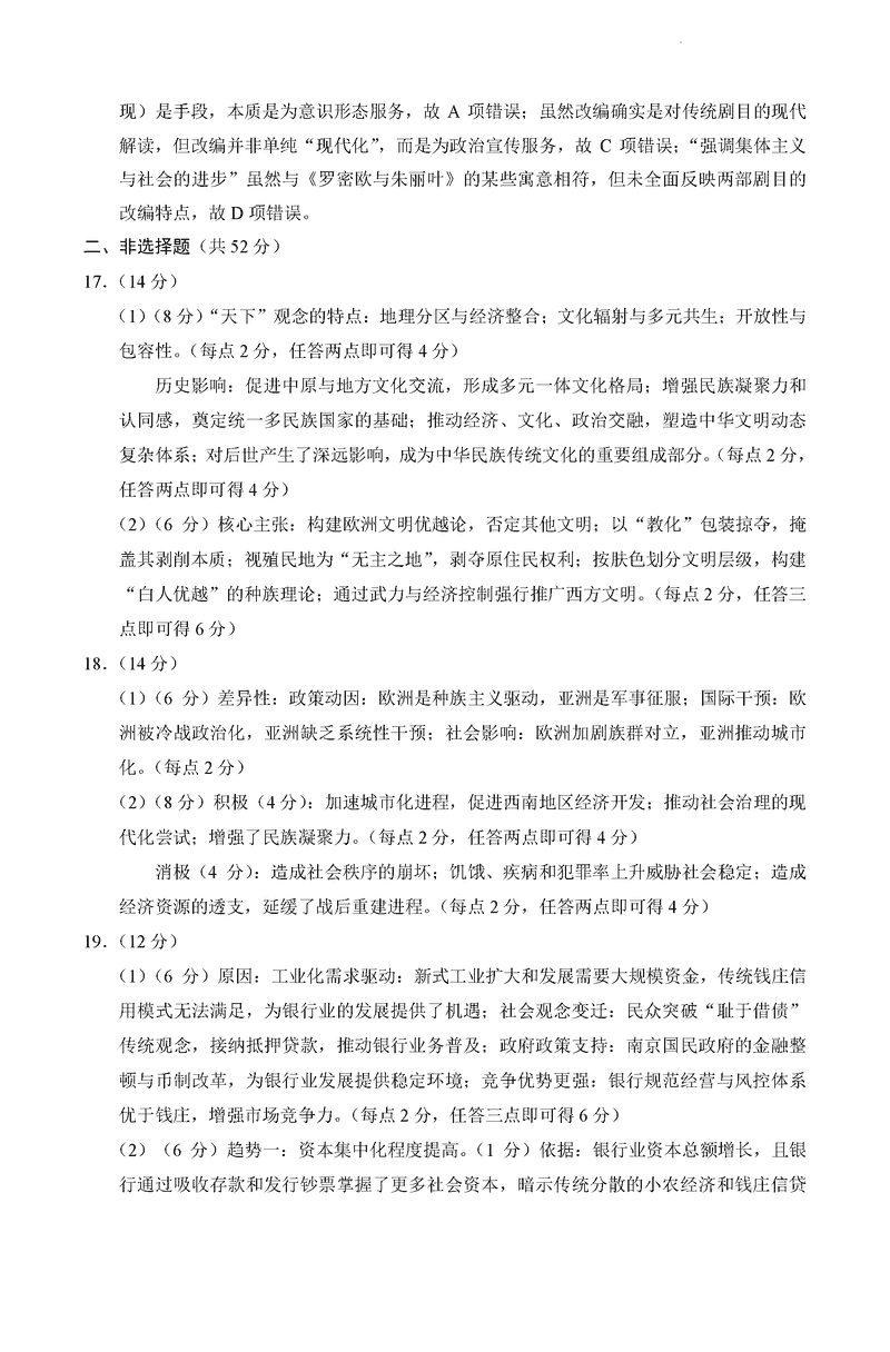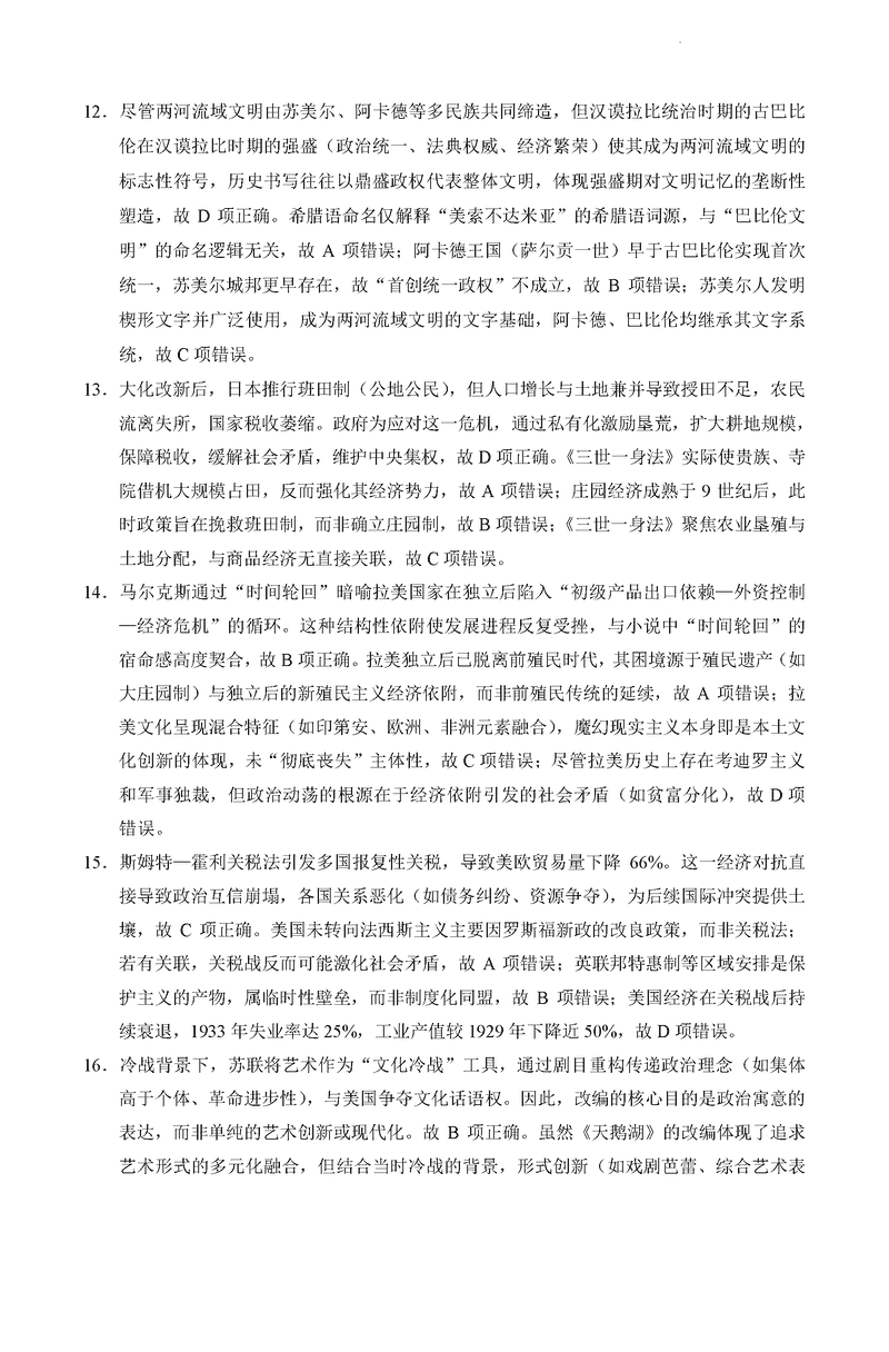 2025届云南三校高三高考备考实用性联考卷(七)历史试题及答案汇总