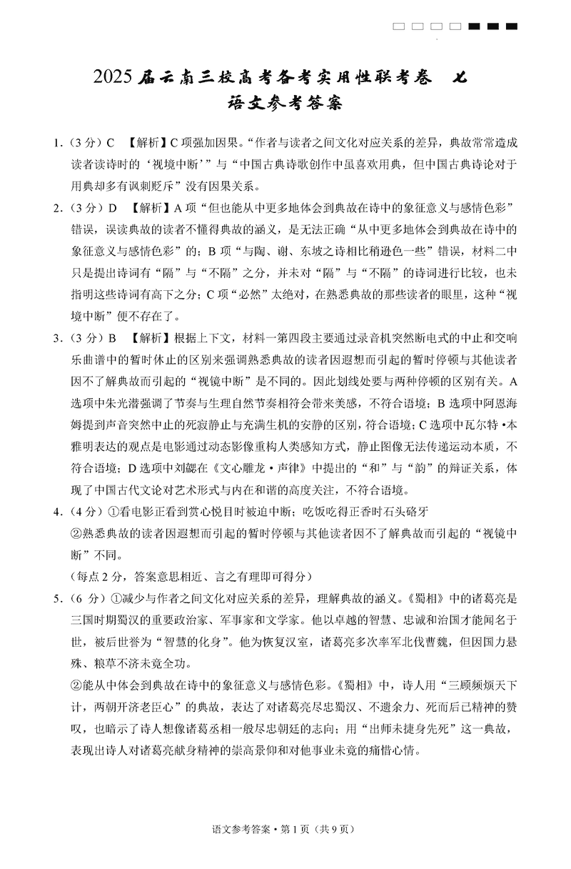 2025届云南三校高三高考备考实用性联考卷(七)语文考试已于近日开考,为方便考生考后及时查看考试情况,查漏补缺、弥补不足,本文整理了试题答案解析相关信息!
