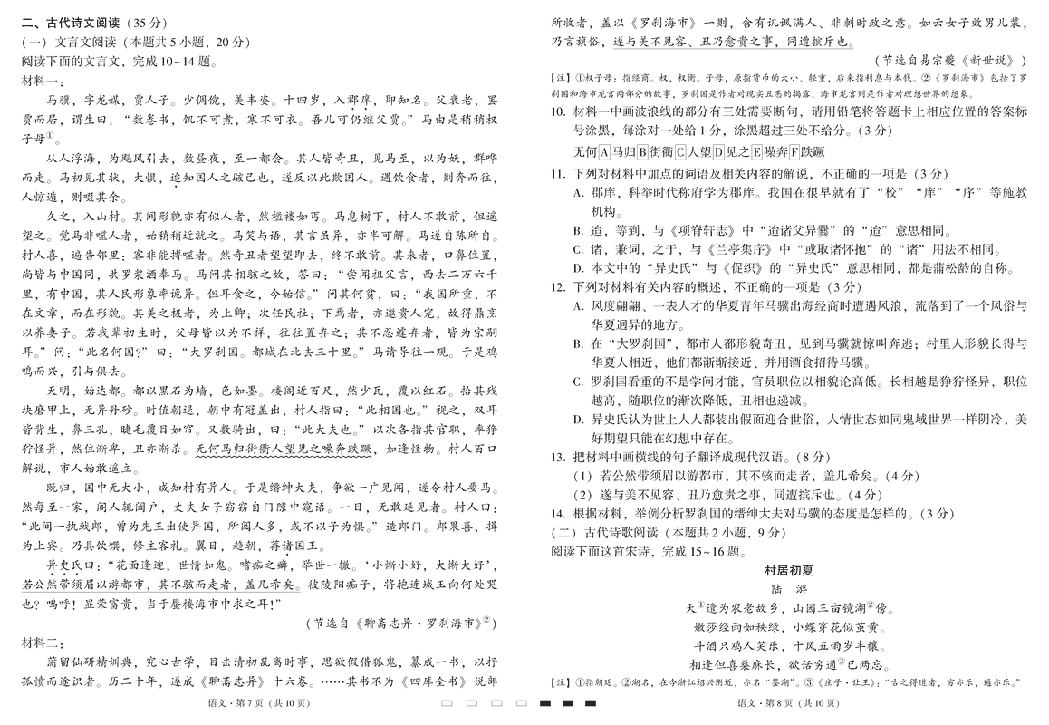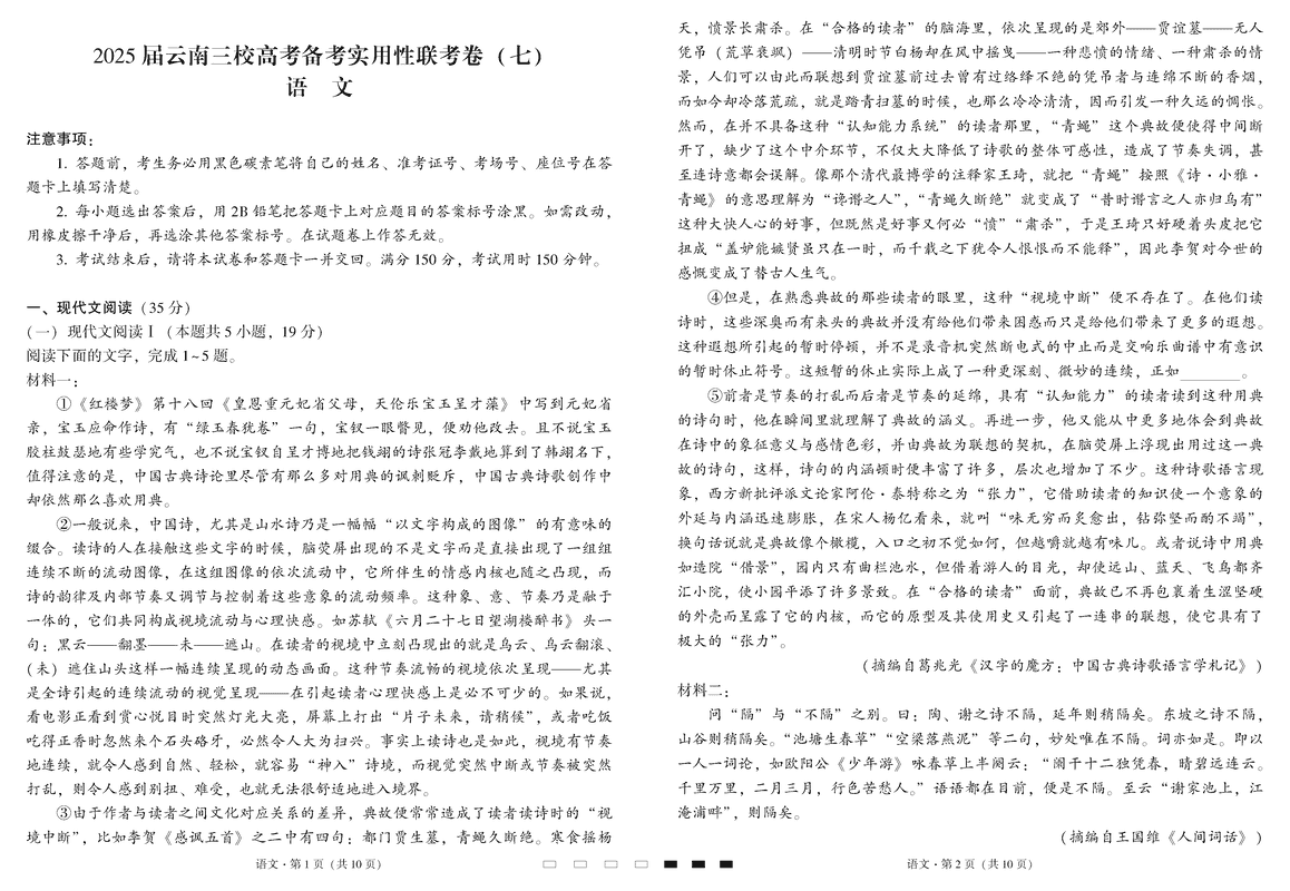 2025届云南三校高三高考备考实用性联考卷(七)语文试题及答案汇总