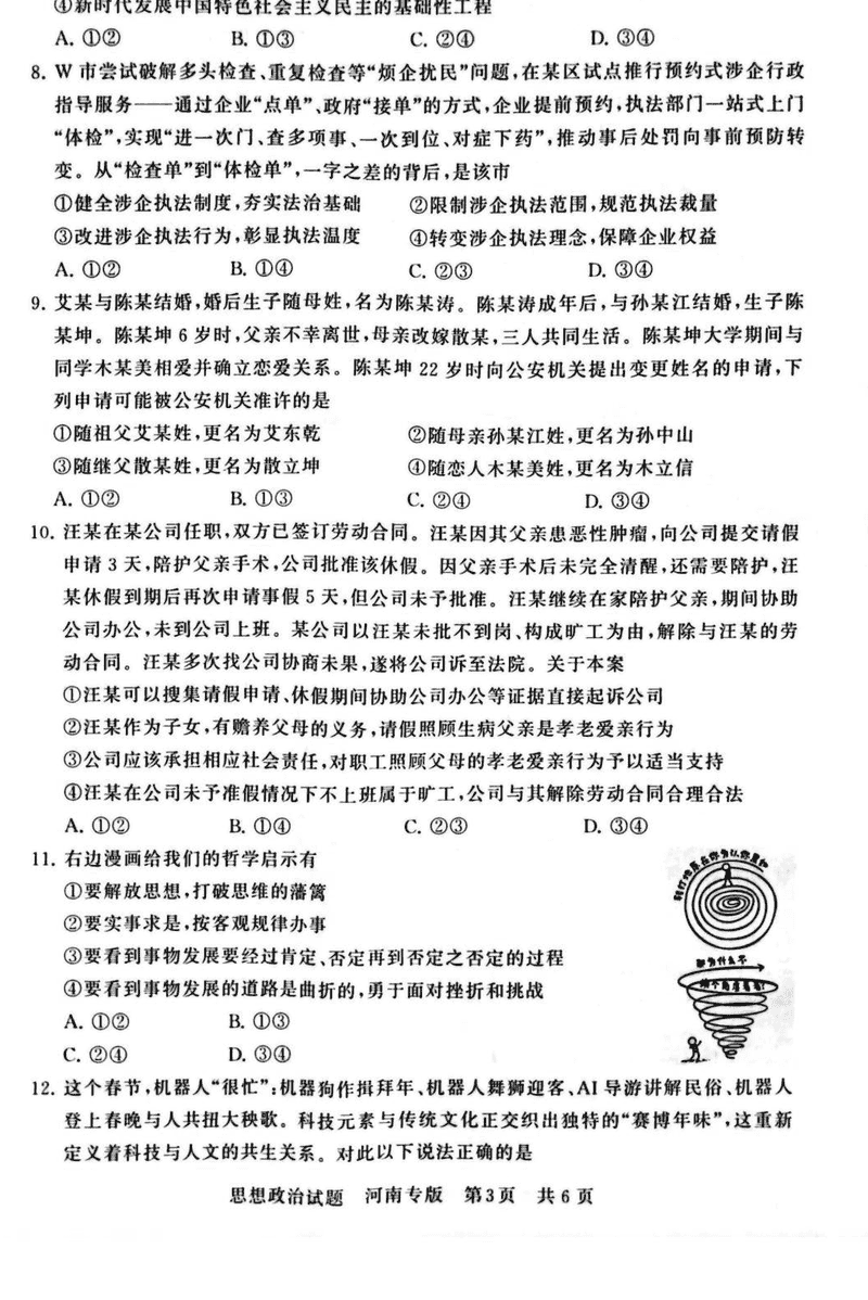 2025届八省八校T8联考高三3月联合测评政治(河南版)试题及答案汇总