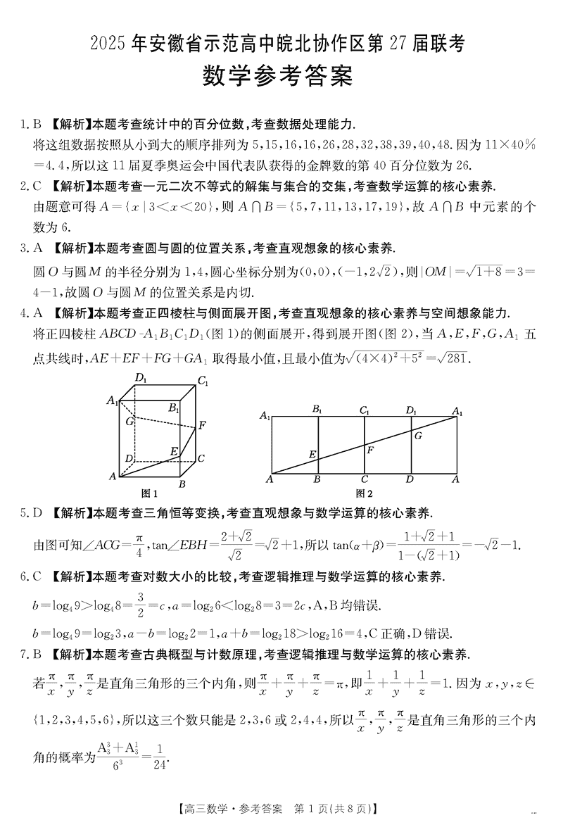 汇总:2025年安徽省示范高中皖北协作区第27届联考试题及答案汇总