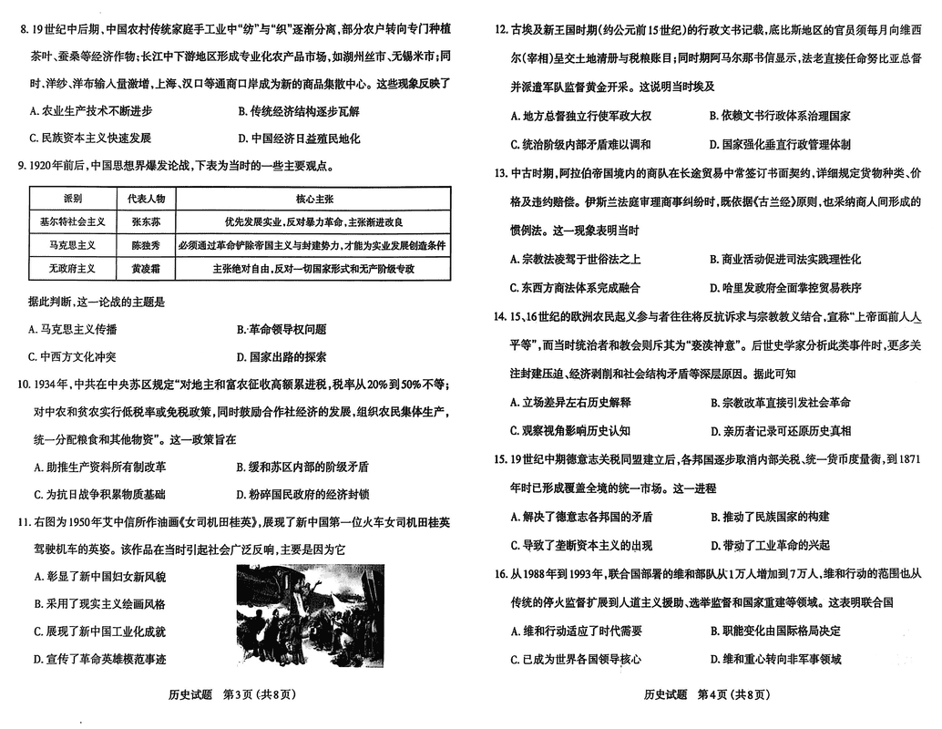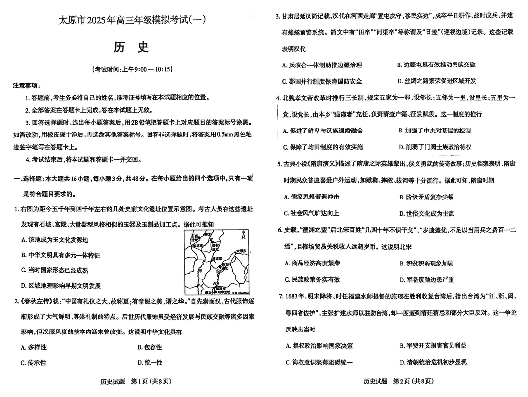 太原市2025年高三年级模拟考试(一)历史试题及答案 时间:2025-03-31 山西 文综试题 太原市2025年高三年级模拟考试(一)历史考试已于近日开考,为方便考生考后及时查看考试情况,查漏补缺、弥补不足,本文整理了试题答案解析相关信息! 汇总:太原市2025年高三年级模拟考试(一)试题及答案汇总 历史试题及答案解析