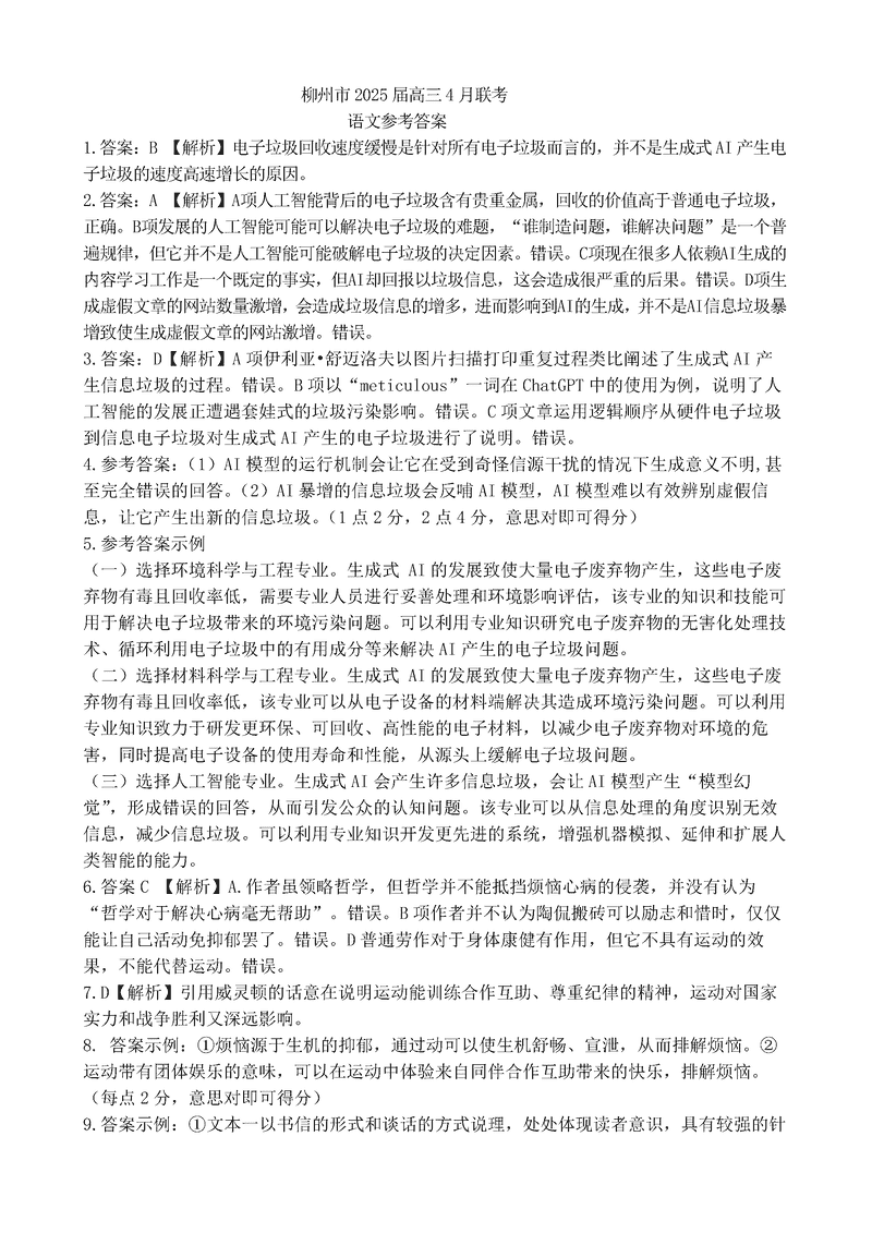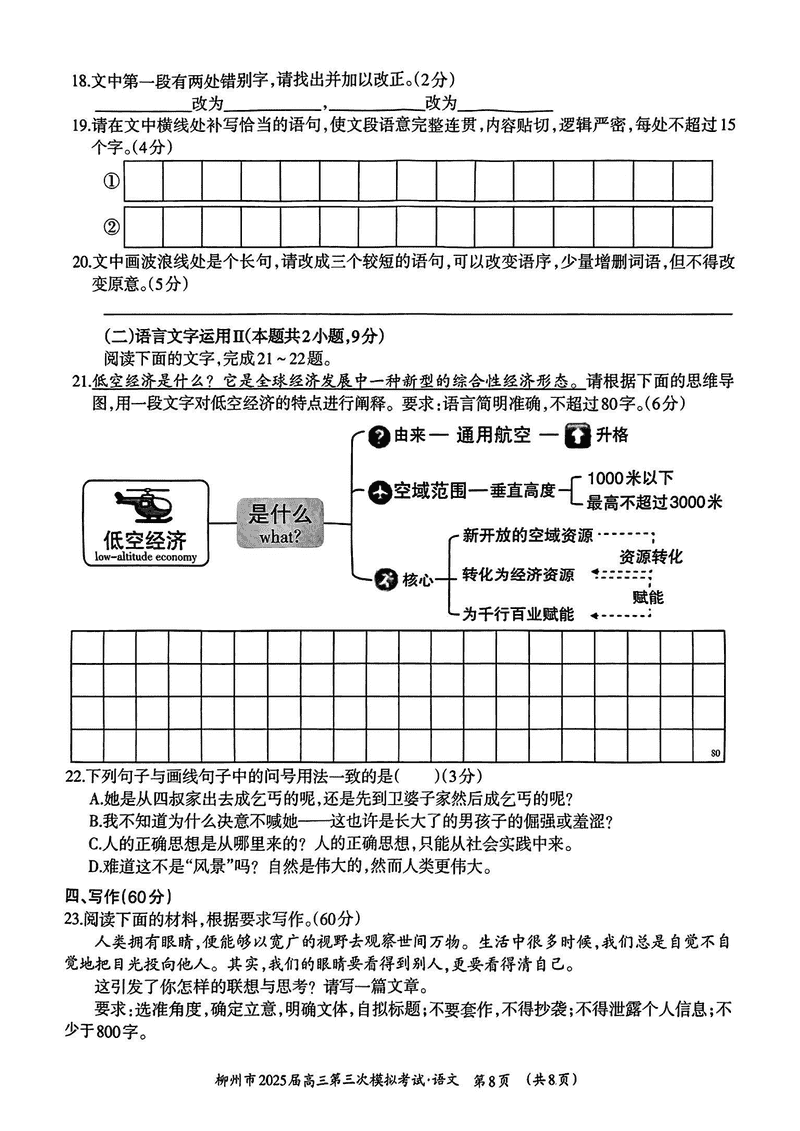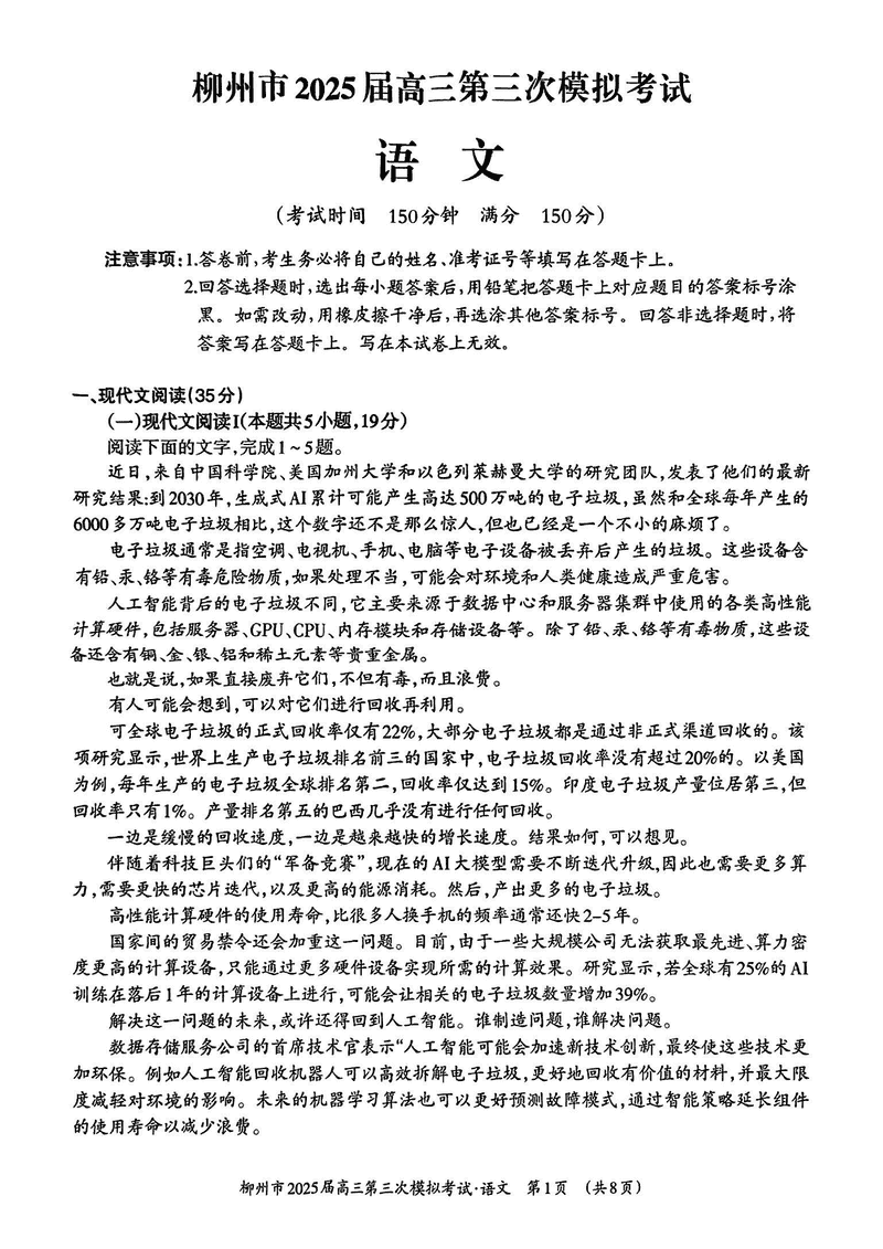 柳州三模2025届高三第三次模考语文试题及答案 时间:2025-03-31 广西 语文试题 柳州三模2025届高三第三次模考语文考试已于近日开考,为方便考生考后及时查看考试情况,查漏补缺、弥补不足,本文整理了试题答案解析相关信息! 汇总:柳州三模2025届高三第三次模拟考试试题及答案汇总 语文试题及答案解析