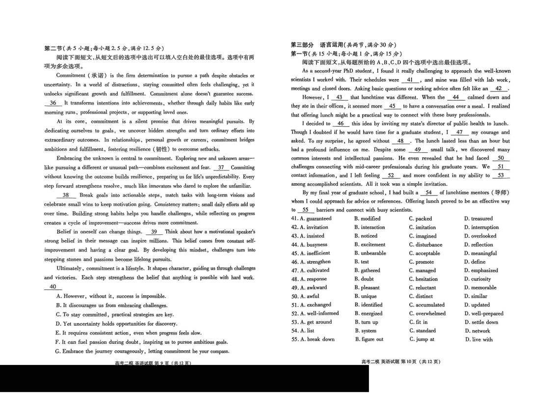 江西省九江市2025年第二次模考英语考试已于近日开考,为方便考生考后及时查看考试情况,查漏补缺、弥补不足,本文整理了试题答案解析相关信息!