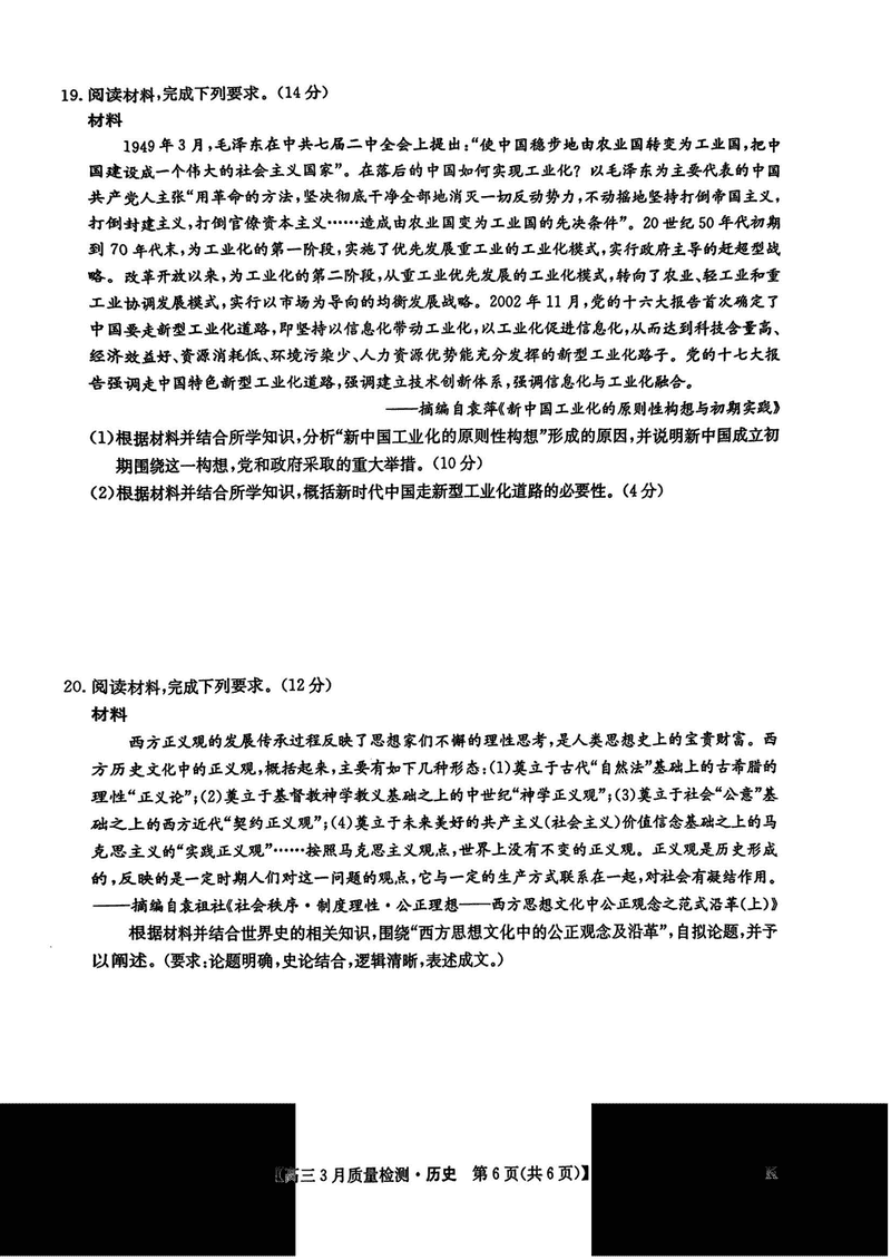 九师联盟2025届高三3月质量检测历史试题及答案
