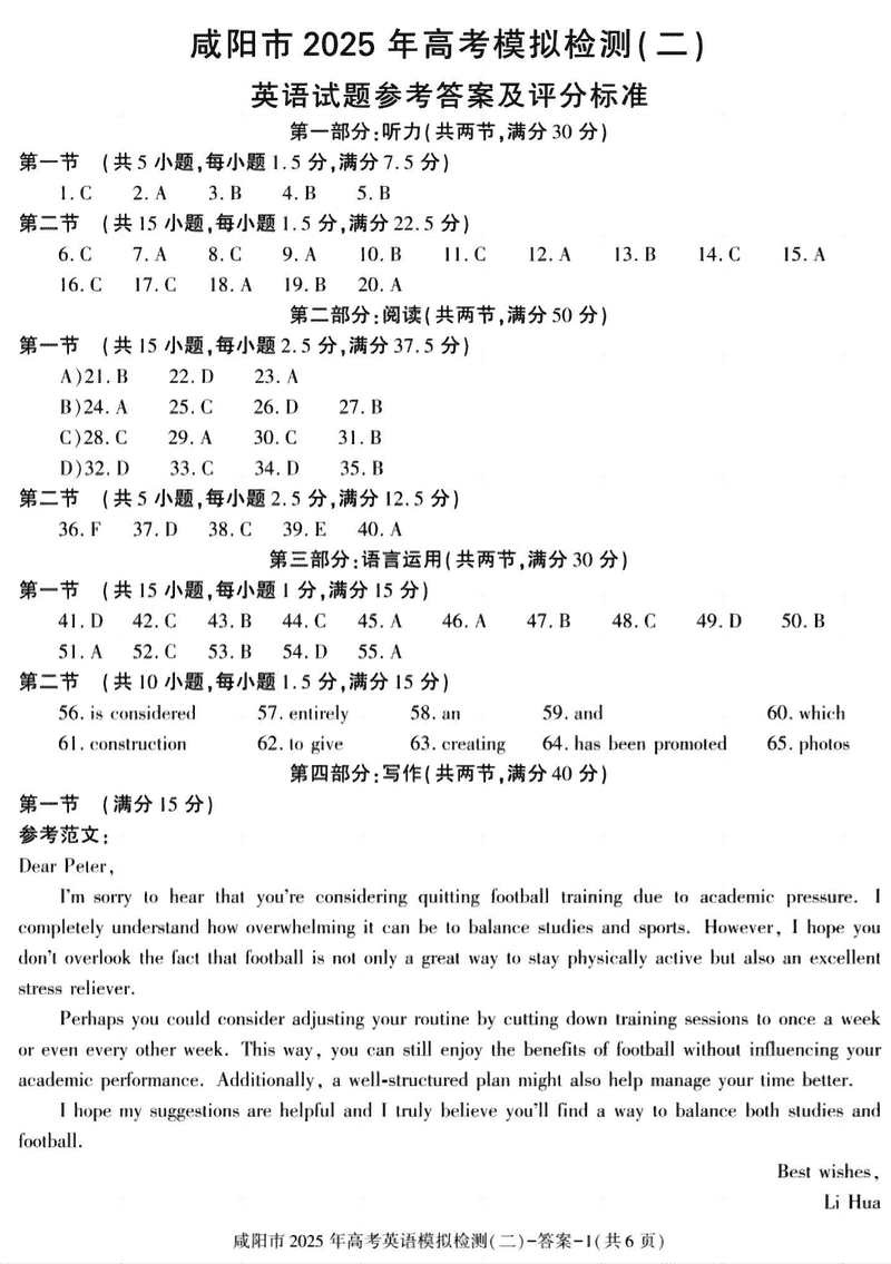 咸阳市2025年高考模拟检测(二)英语试题及答案 时间:2025-03-31 陕西 英语试题 咸阳市2025年高考模拟检测(二)英语考试已于近日开考,为方便考生考后及时查看考试情况,查漏补缺、弥补不足,本文整理了试题答案解析相关信息! 汇总:陕西省咸阳市2025届高三第二次模拟试题及答案汇总 英语试题及答案解析
