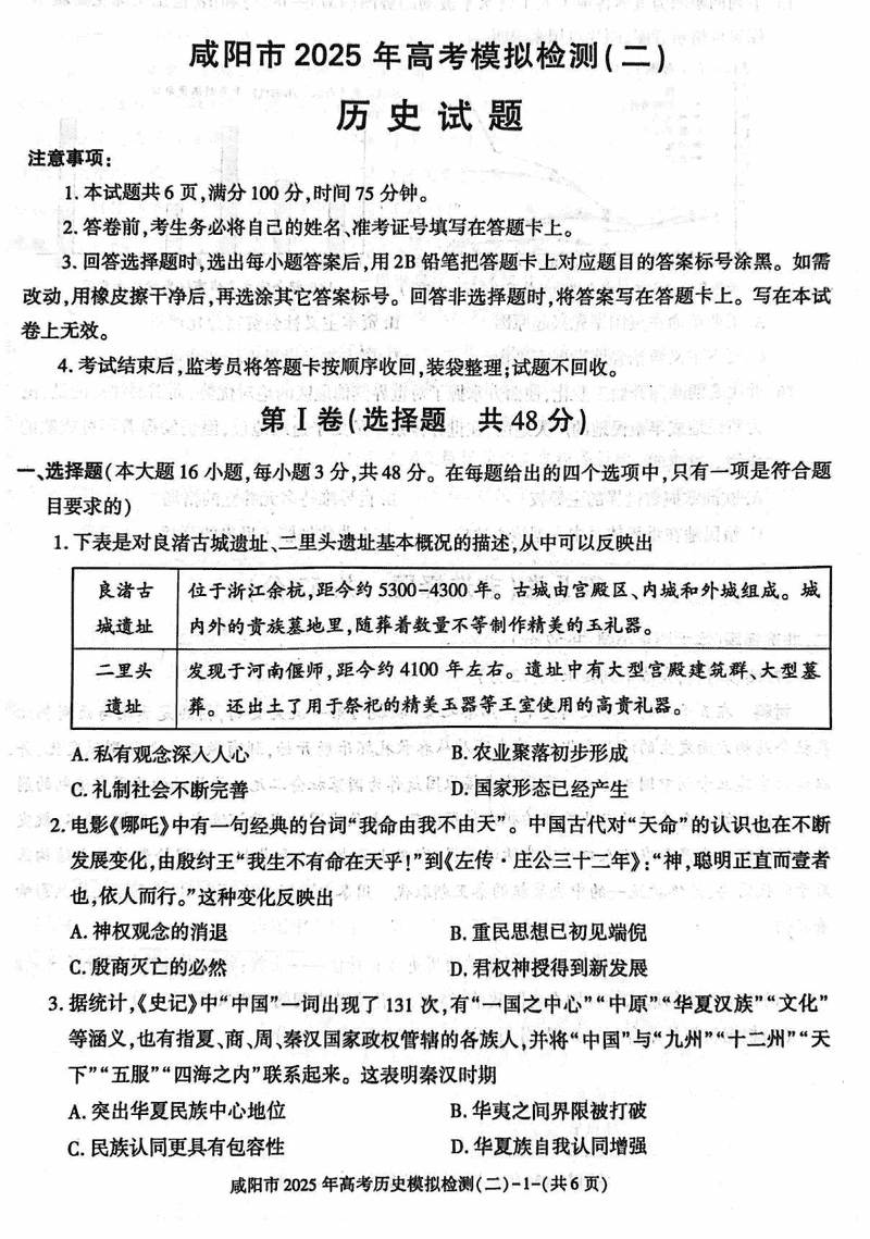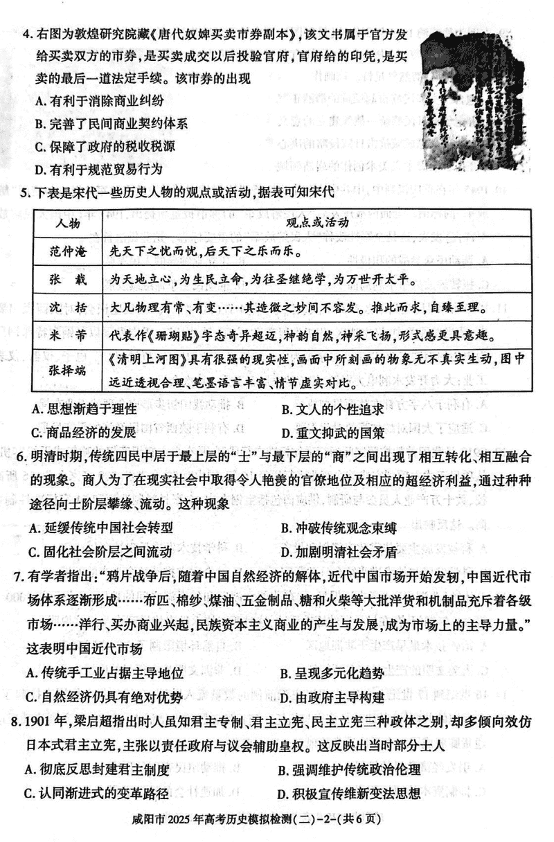 咸阳市2025年高考模拟检测(二)历史试题及答案 时间:2025-03-31 陕西 文综试题 咸阳市2025年高考模拟检测(二)历史考试已于近日开考,为方便考生考后及时查看考试情况,查漏补缺、弥补不足,本文整理了试题答案解析相关信息! 汇总:陕西省咸阳市2025届高三第二次模拟试题及答案汇总 历史试题及答案解析