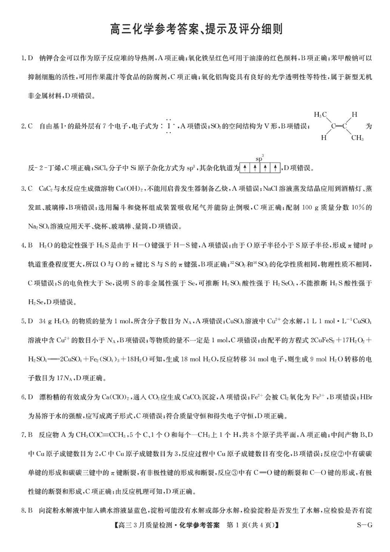 河南省九师联盟2025届高三4月联考化学试题及答案 时间:2025-04-03 河南 理综试题 河南省九师联盟2025届高三4月联考化学考试已于近日开考,为方便考生考后及时查看考试情况,查漏补缺、弥补不足,本文整理了试题答案解析相关信息! 汇总:河南省九师联盟2025届高三4月联考试题及答案汇总 化学试题及答案解析