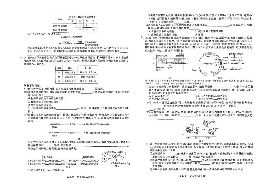 辽宁省县域重点高中2025年高三二模生物试题及答案
