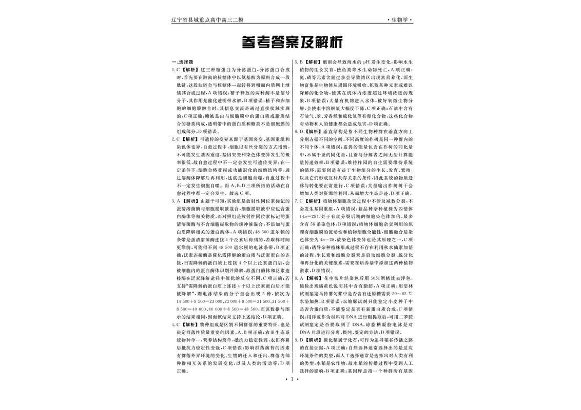 辽宁省县域重点高中2025年高三二模生物考试已于近日开考,为方便考生考后及时查看考试情况,查漏补缺、弥补不足,本文整理了试题答案解析相关信息!