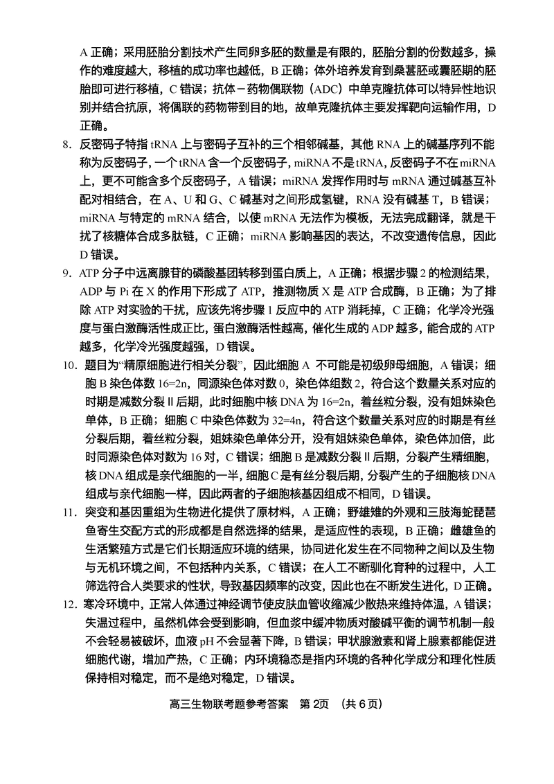 2025届海南中学等四校高三下学期模拟联考生物试题及答案