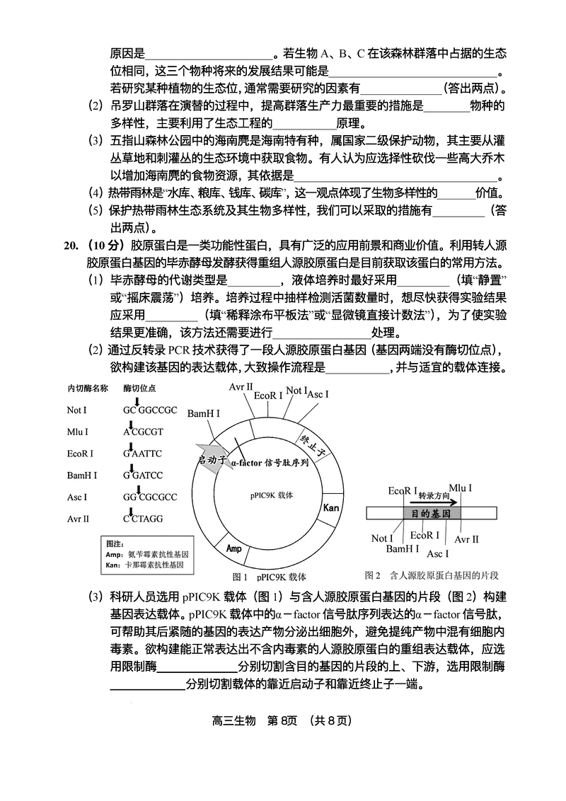 2025届海南中学、海口一中、文昌中学、嘉积中学四校高三下学期模拟联考生物考试已于近日开考,为方便考生考后及时查看考试情况,查漏补缺、弥补不足,本文整理了试题答案解析相关信息!