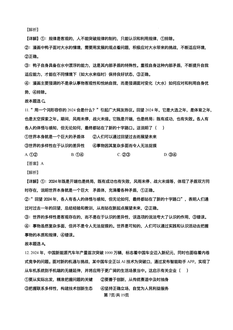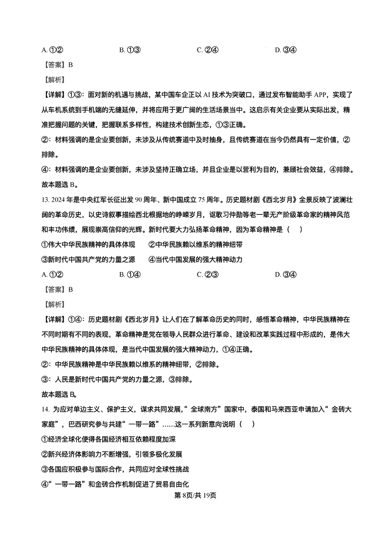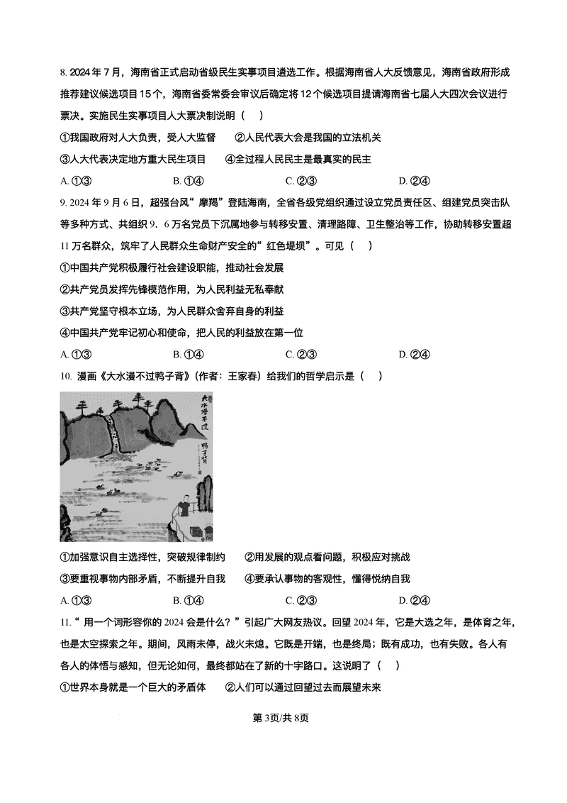 2025届海南中学等四校高三下学期模拟联考政治试题及答案