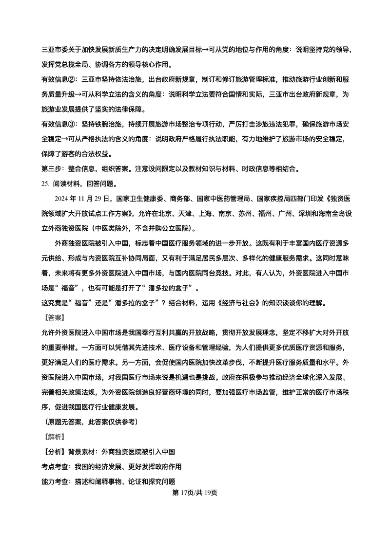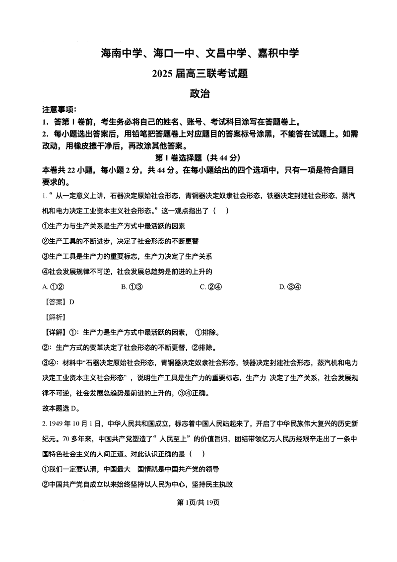 2025届海南中学、海口一中、文昌中学、嘉积中学四校高三下学期模拟联考政治考试已于近日开考,为方便考生考后及时查看考试情况,查漏补缺、弥补不足,本文整理了试题答案解析相关信息!