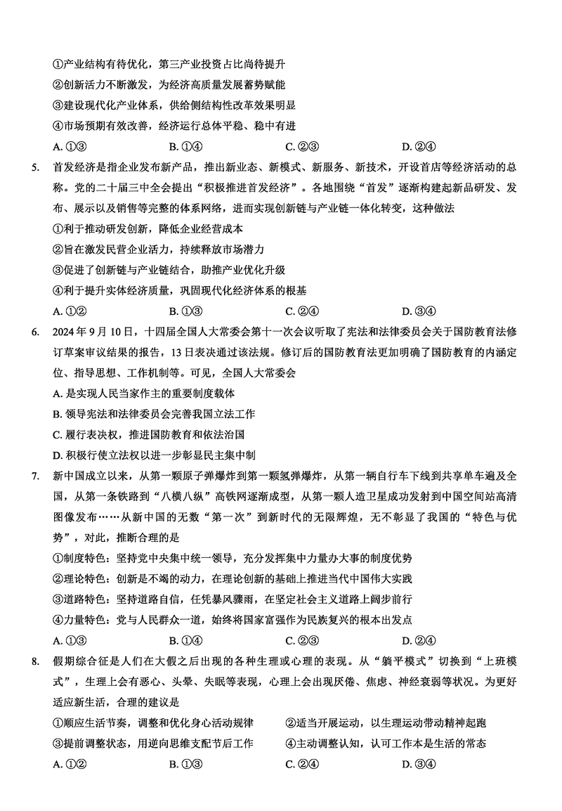 重庆康德卷2025年高考模拟调研(四)政治试题及答案 时间:2025-04-03 重庆 文综试题 重庆康德卷2025年高考模拟调研(四)政治考试已于近日开考,为方便考生考后及时查看考试情况,查漏补缺、弥补不足,本文整理了试题答案解析相关信息! 汇总:重庆康德卷2025年高考模拟调研(四)试题及答案汇总 政治试题及答案解析