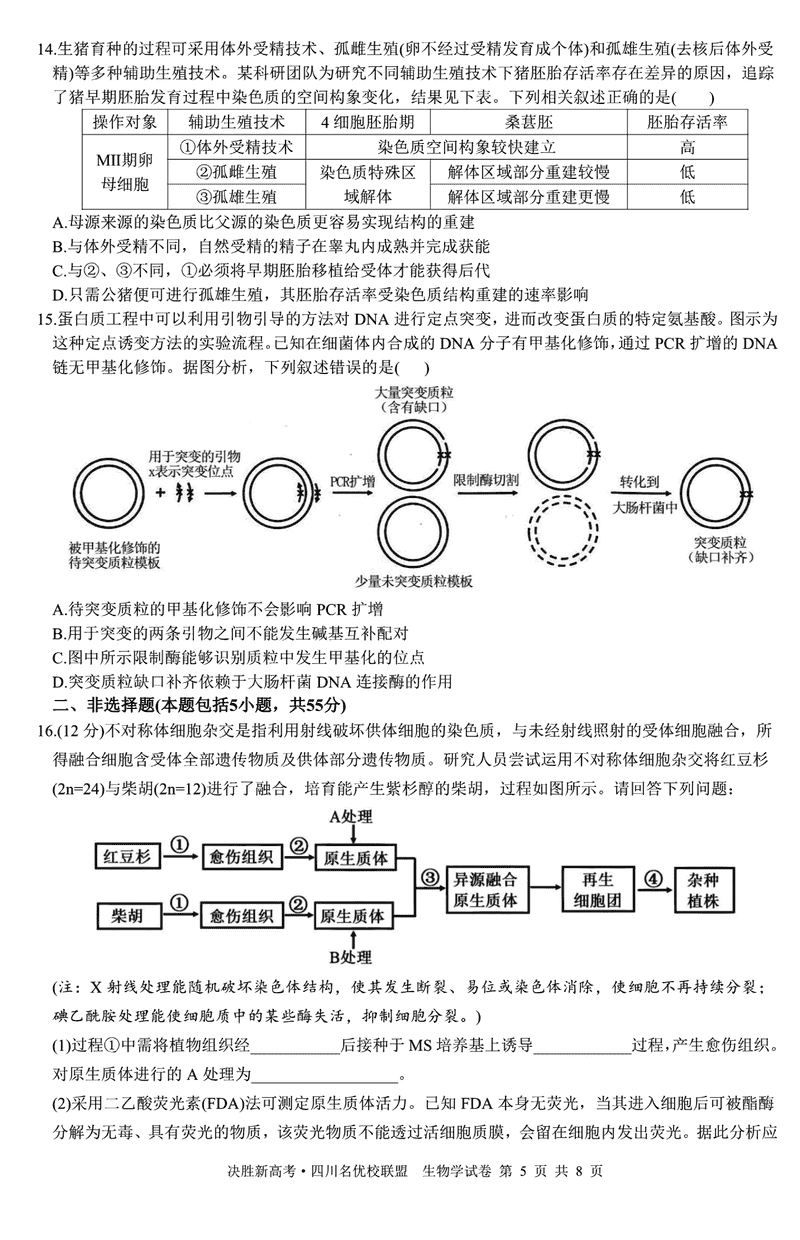 决胜新高考·四川名优校联盟2025届高三4月联考生物试题及答案