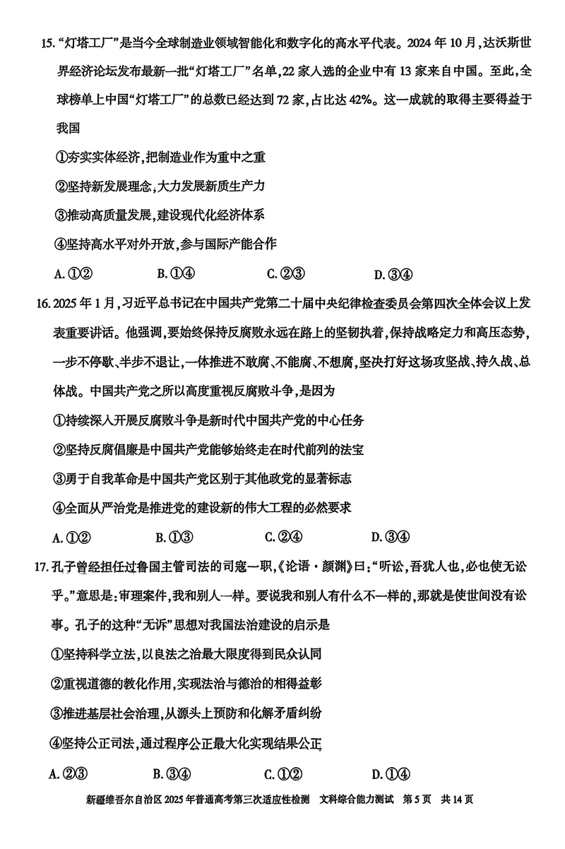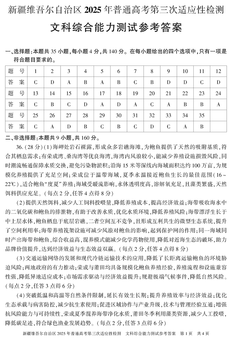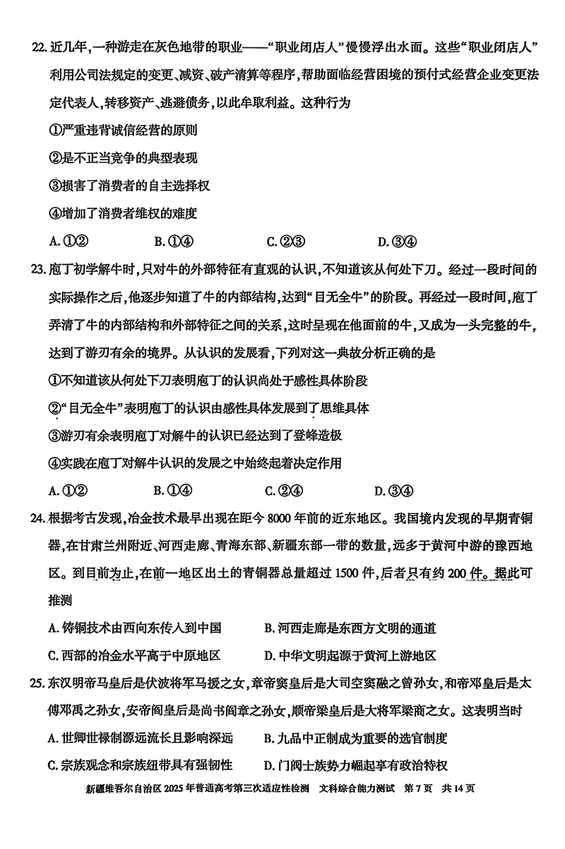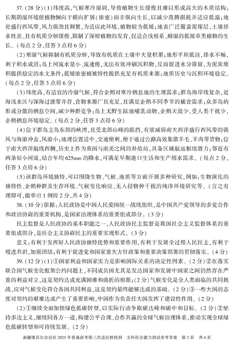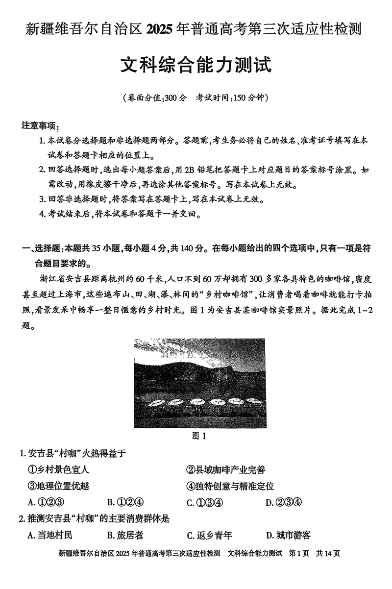 新疆2025届高三下学期第三次适应性检测文综考试已于近日开考,为方便考生考后及时查看考试情况,查漏补缺、弥补不足,本文整理了试题答案解析相关信息!