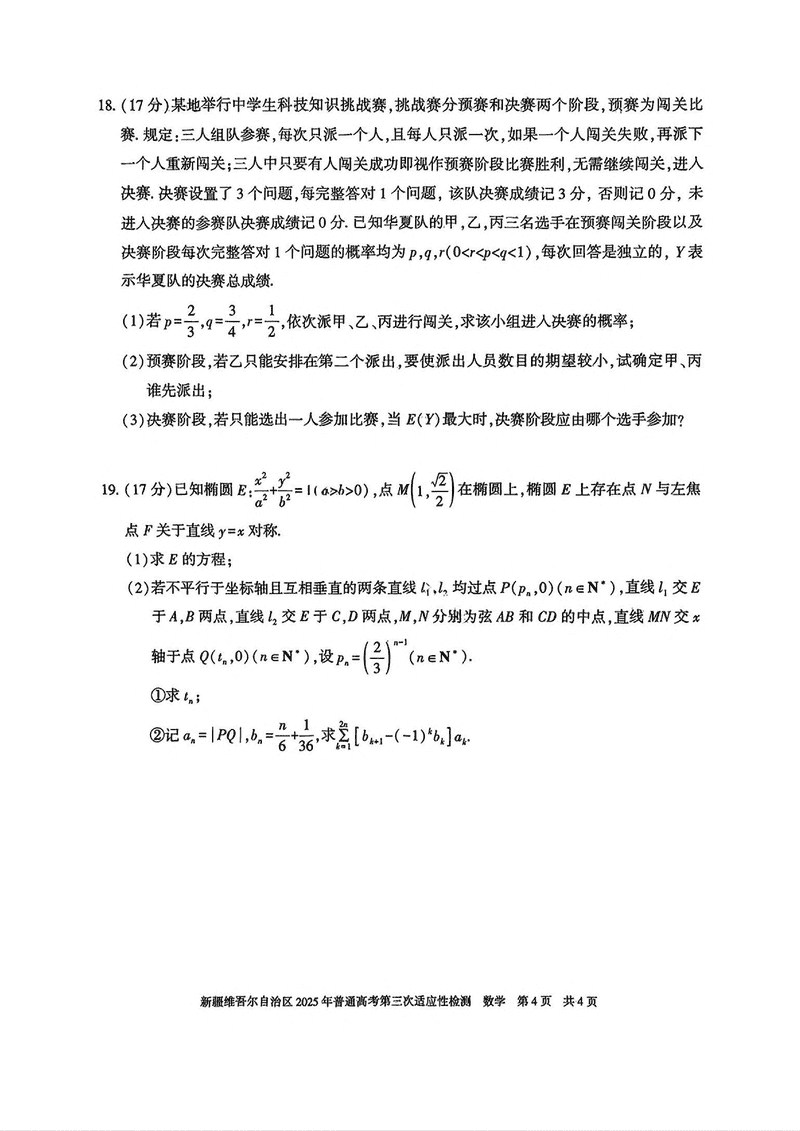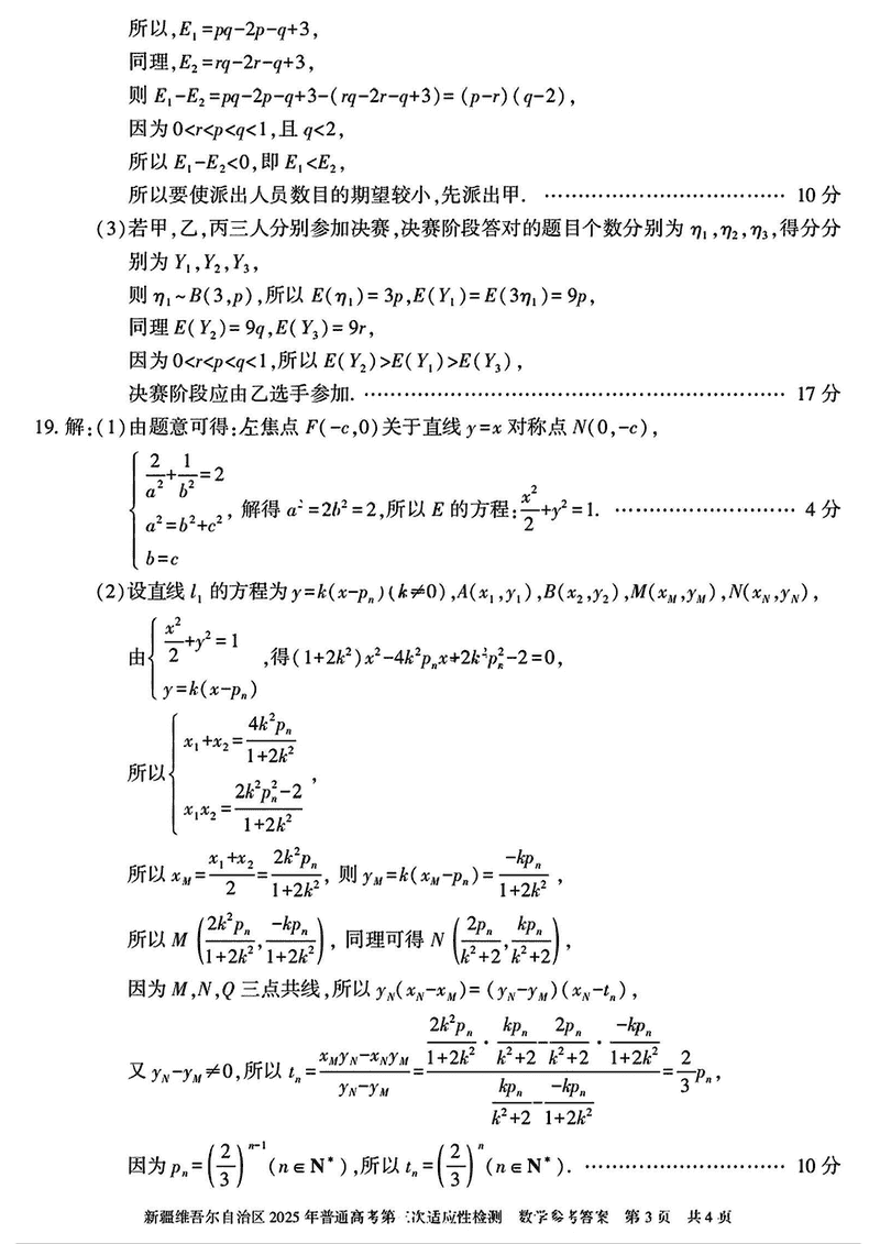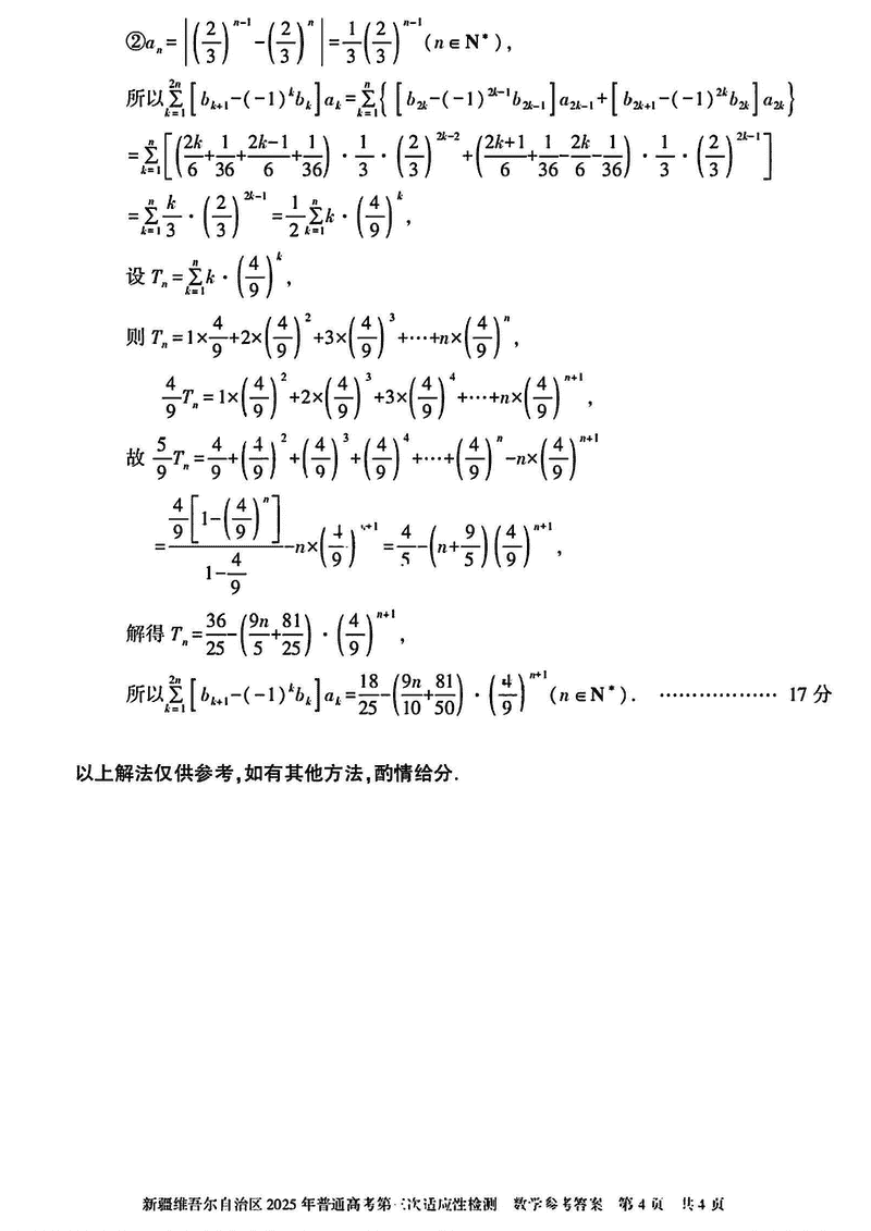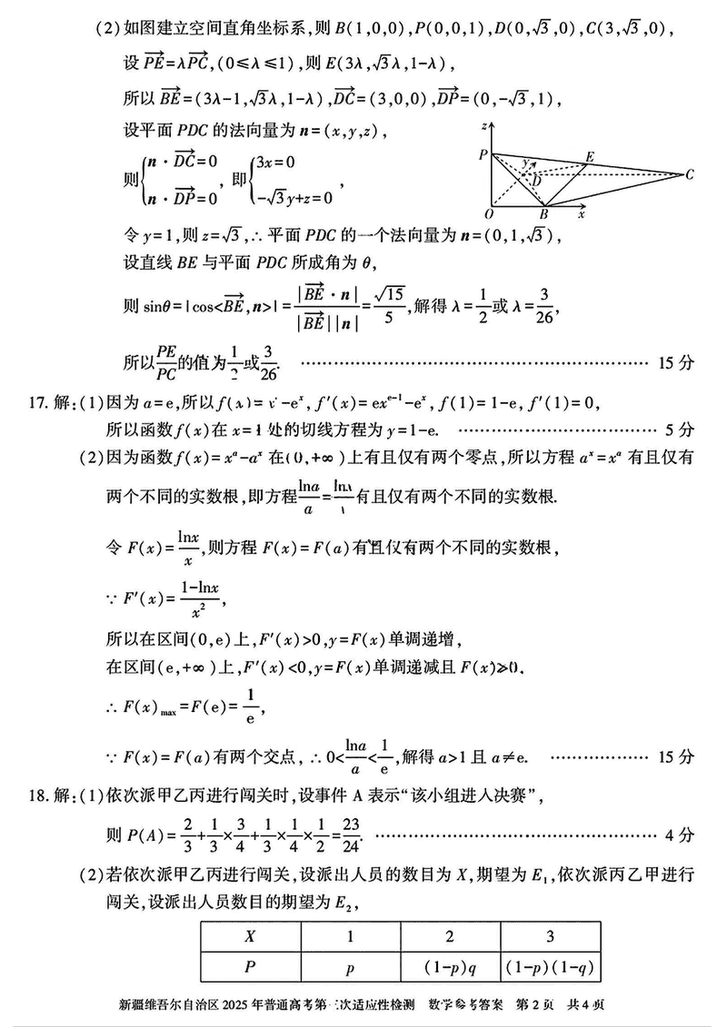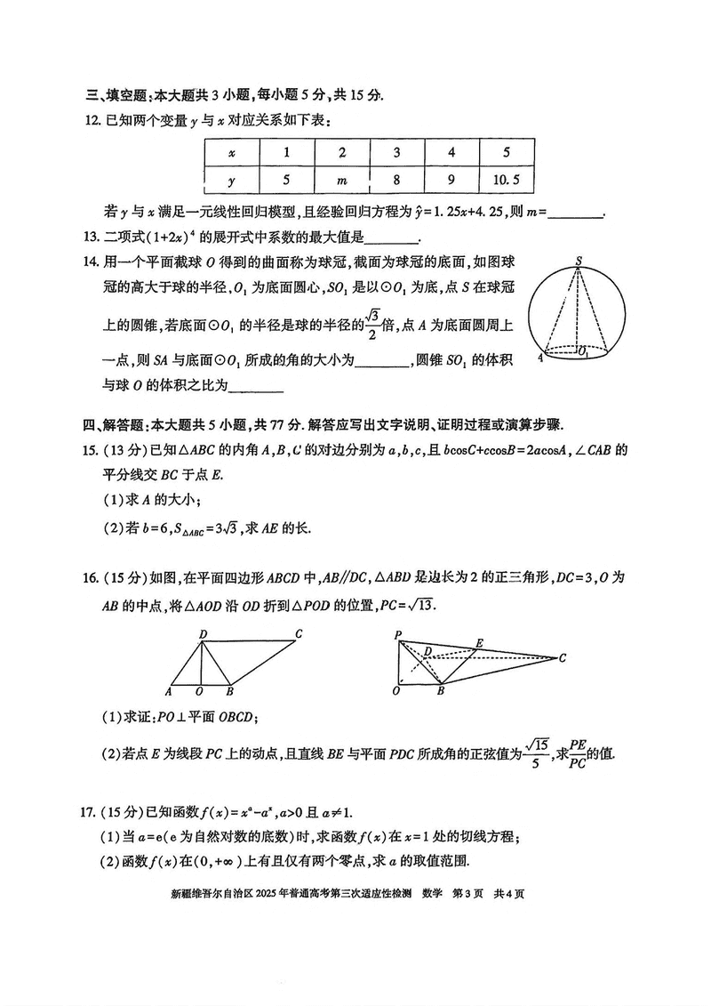 新疆2025届高三下学期第三次适应性检测数学试题及答案