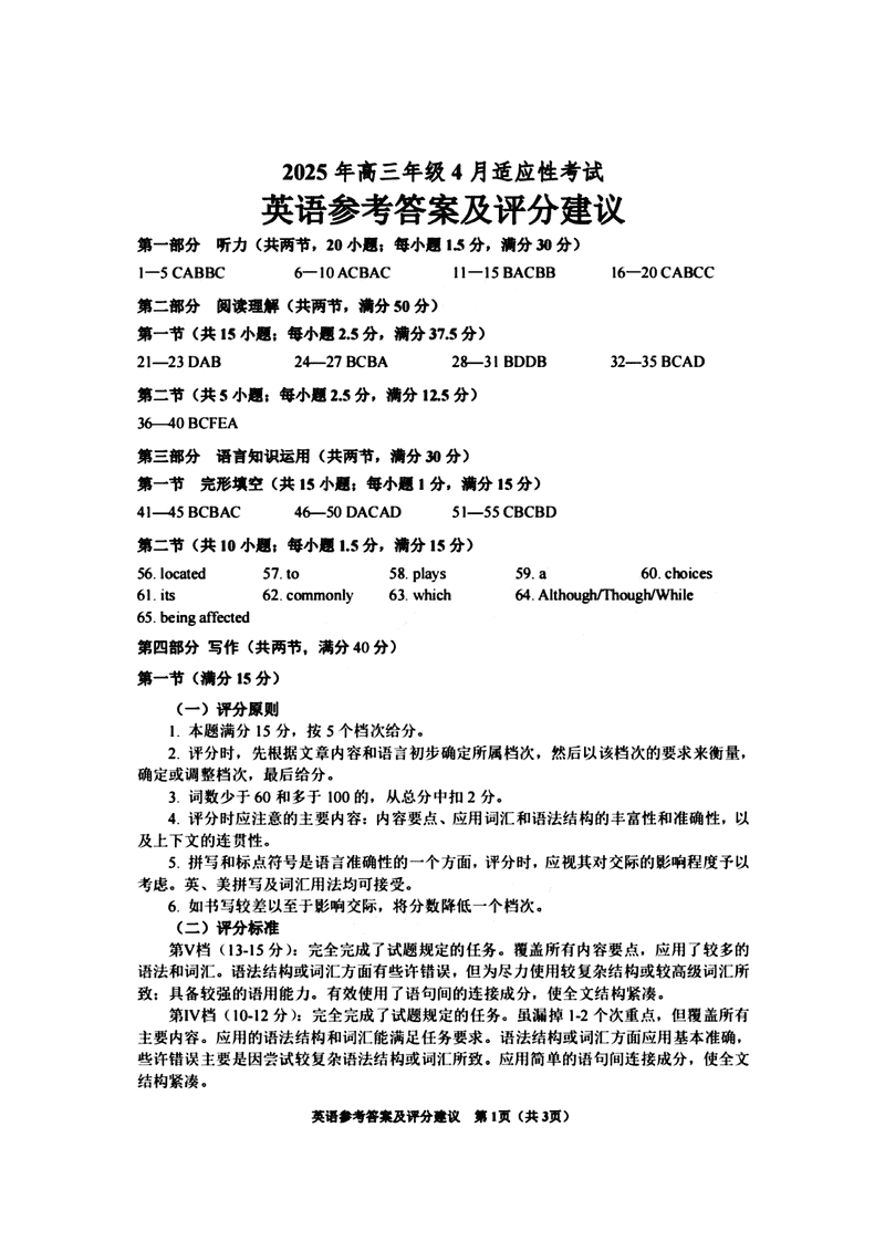 贵州2025年4月高三年级适应性英语试题及答案 时间:2025-04-12 贵州 英语试题 贵州2025年4月高三年级适应性英语考试已于近日开考,为方便考生考后及时查看考试情况,查漏补缺、弥补不足,本文整理了试题答案解析相关信息! 汇总:贵州2025年4月高三年级适应性考试试题及答案汇总 英语试题及答案解析
