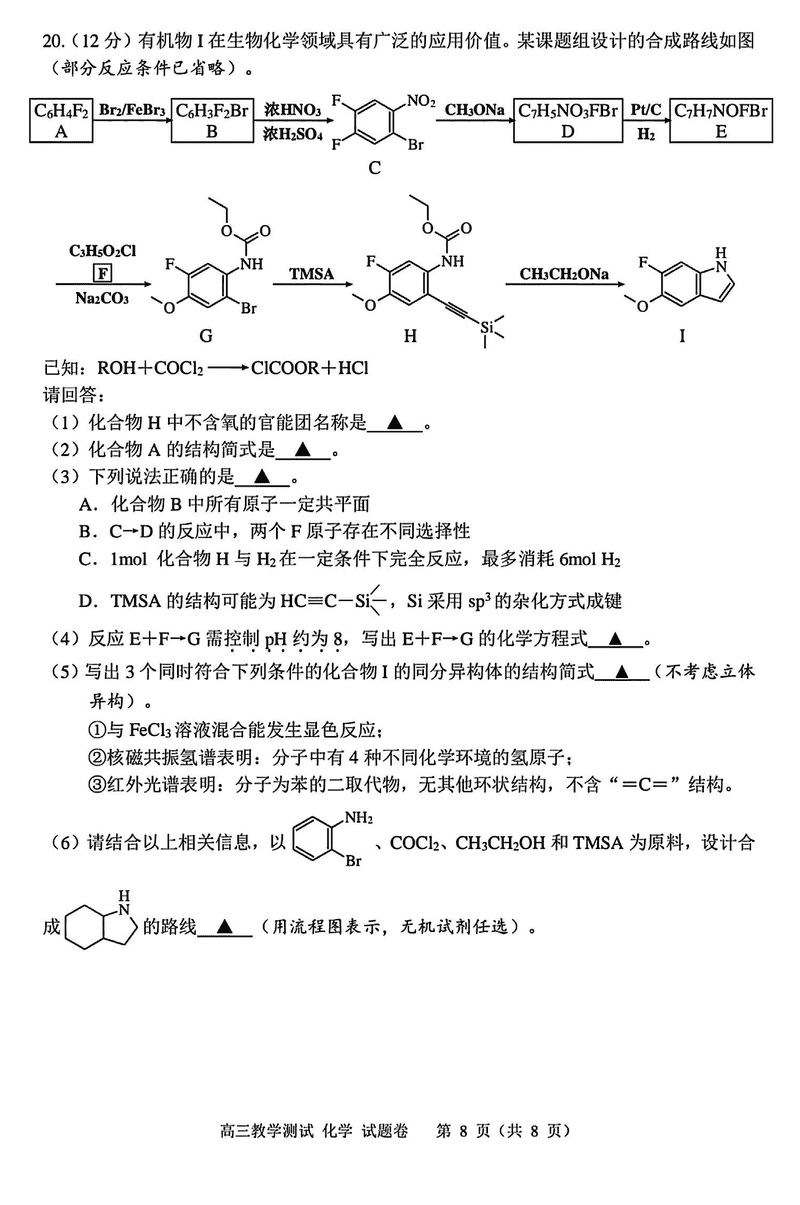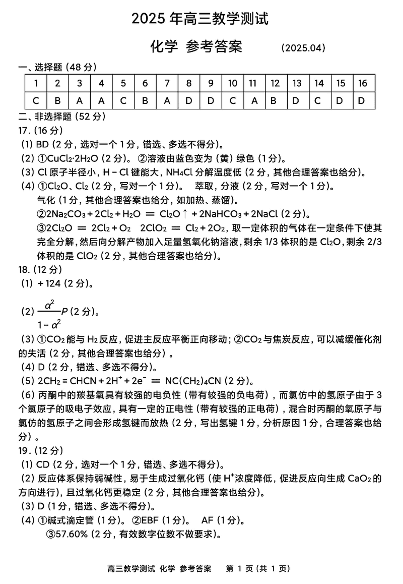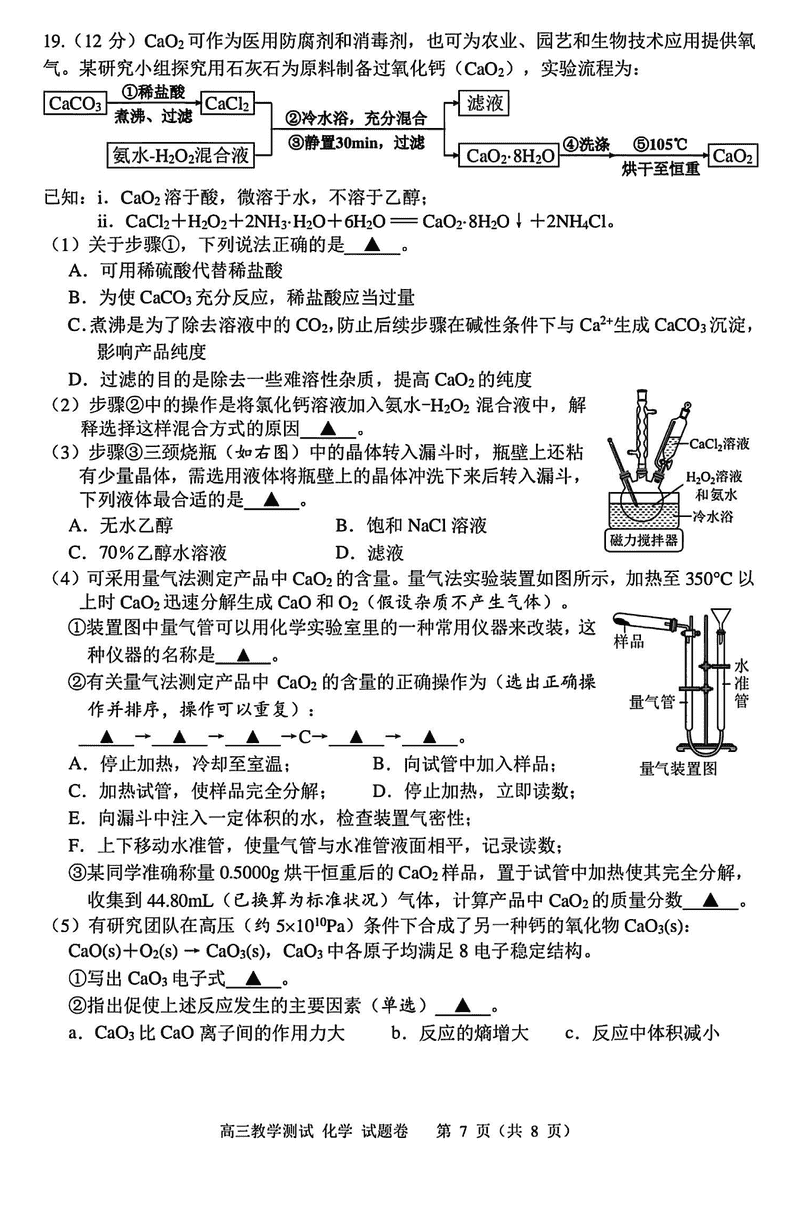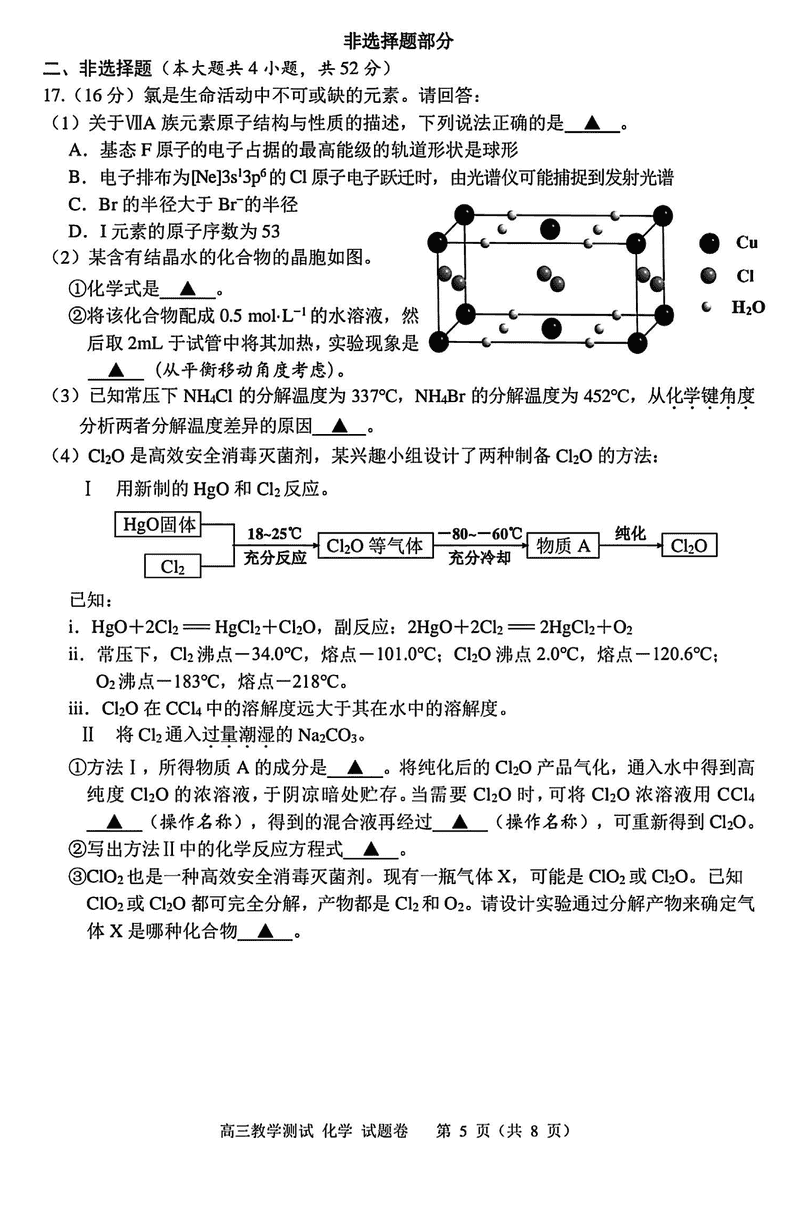 嘉兴二模2025届高三下学期4月教学测试化学考试已于近日开考,为方便考生考后及时查看考试情况,查漏补缺、弥补不足,本文整理了试题答案解析相关信息!