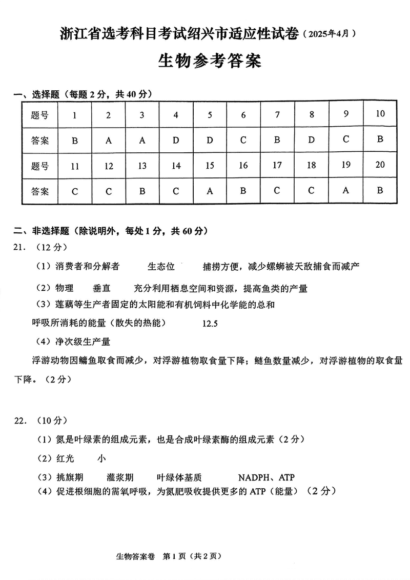 浙江绍兴2025年4月高三二模生物试题及答案 时间:2025-04-12 浙江 理综试题 浙江绍兴2025年4月高三二模生物考试已于近日开考,为方便考生考后及时查看考试情况,查漏补缺、弥补不足,本文整理了试题答案解析相关信息! 汇总:浙江绍兴2025年4月高三二模试题及答案汇总 生物试题及答案解析