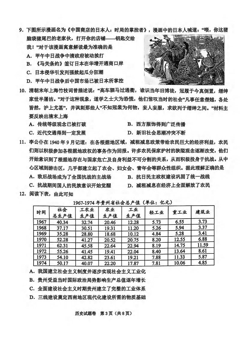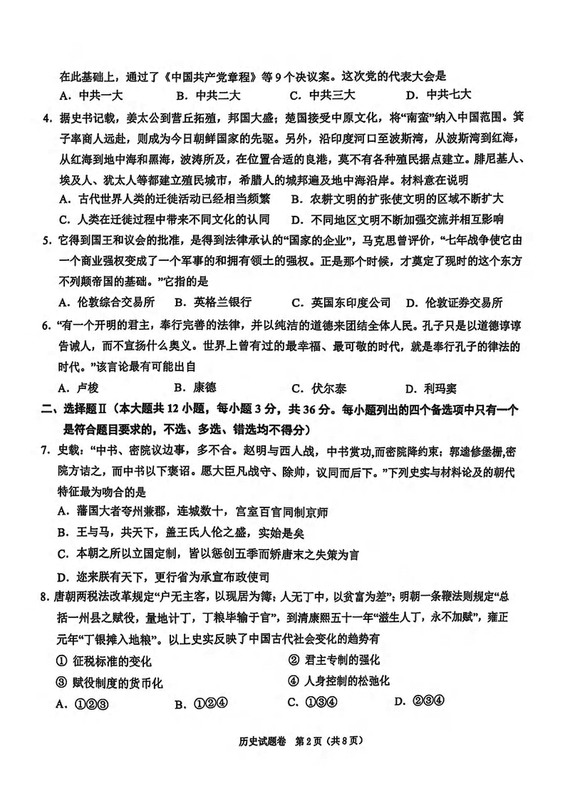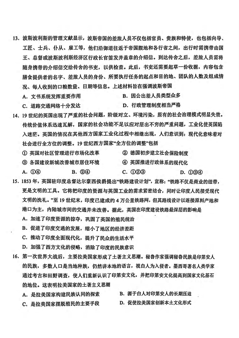 浙江绍兴2025年4月高三二模历史试题及答案 时间:2025-04-12 浙江 文综试题 浙江绍兴2025年4月高三二模历史考试已于近日开考,为方便考生考后及时查看考试情况,查漏补缺、弥补不足,本文整理了试题答案解析相关信息! 汇总:浙江绍兴2025年4月高三二模试题及答案汇总 历史试题及答案解析
