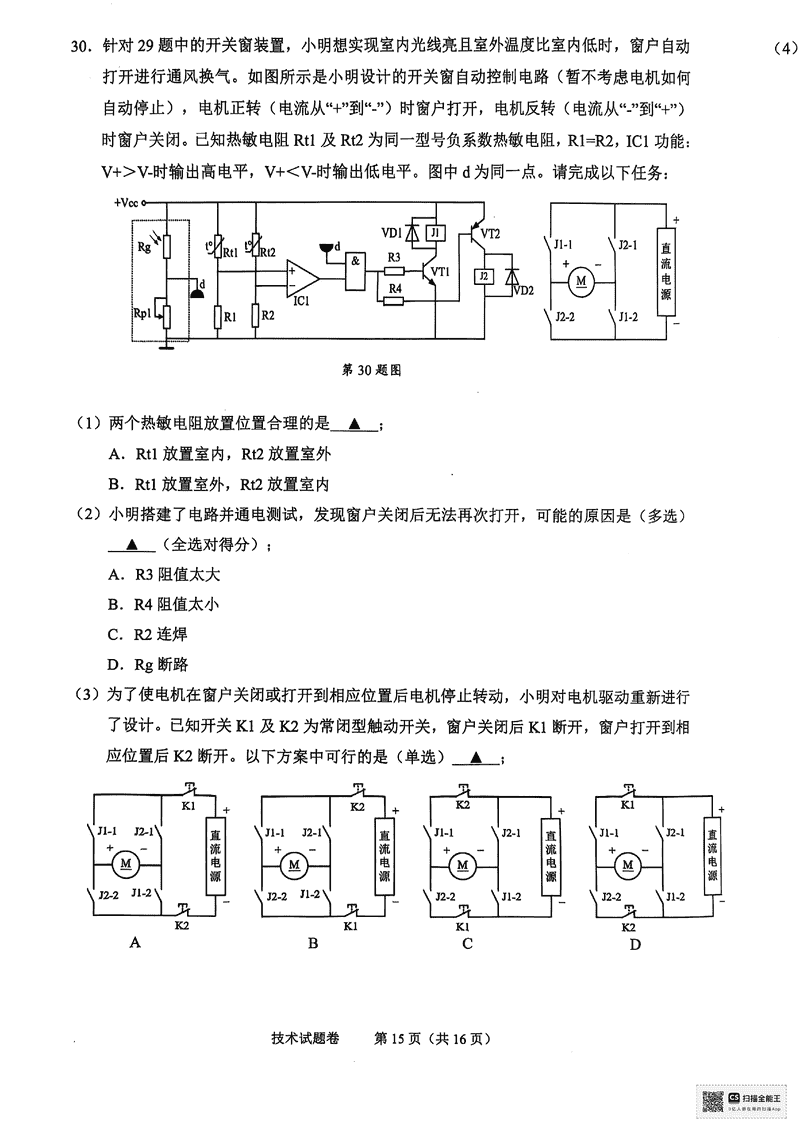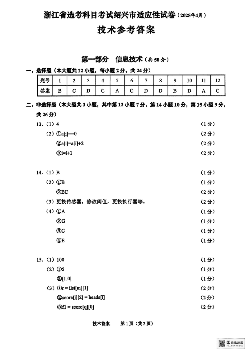 浙江绍兴2025年4月高三二模技术试题及答案