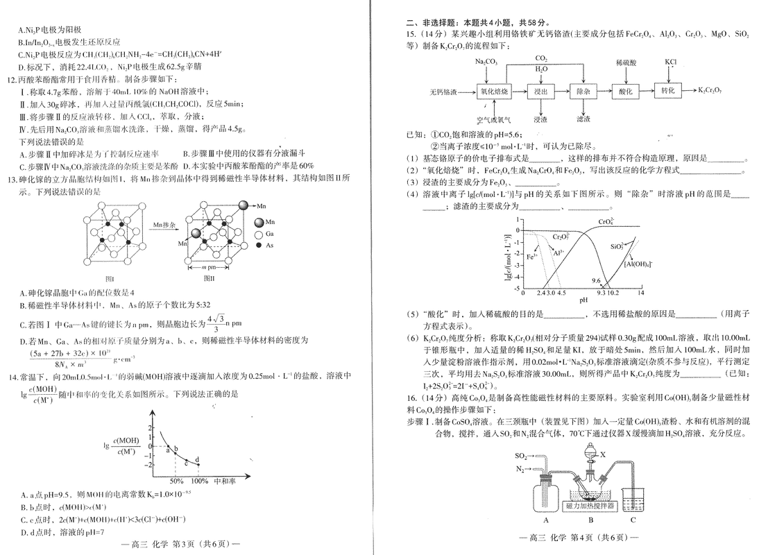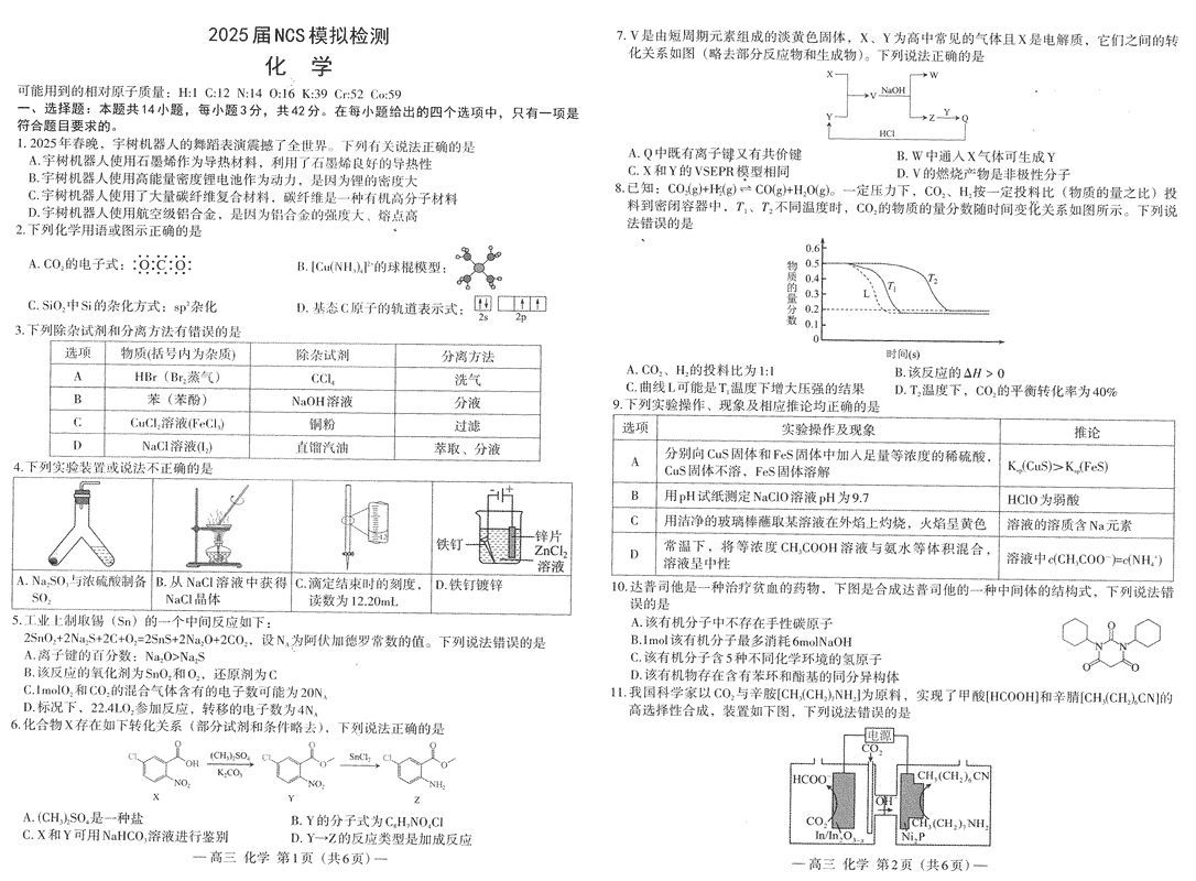 南昌二模2025届NCS模拟检测化学试题及答案 时间:2025-04-12 江西 理综试题 南昌二模2025届NCS模拟检测化学考试已于近日开考,为方便考生考后及时查看考试情况,查漏补缺、弥补不足,本文整理了试题答案解析相关信息! 汇总:南昌二模2025届NCS模拟检测试题及答案汇总 化学试题及答案解析