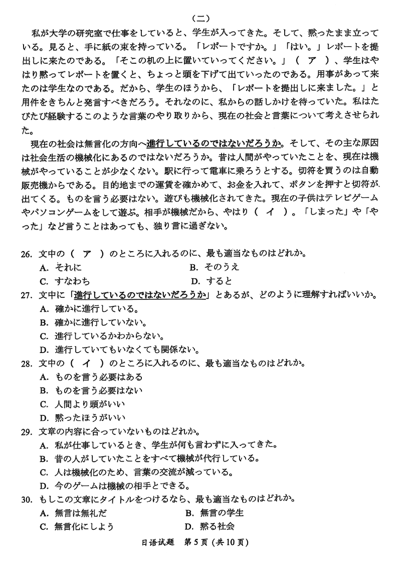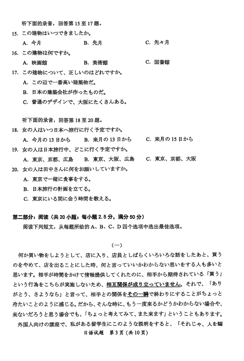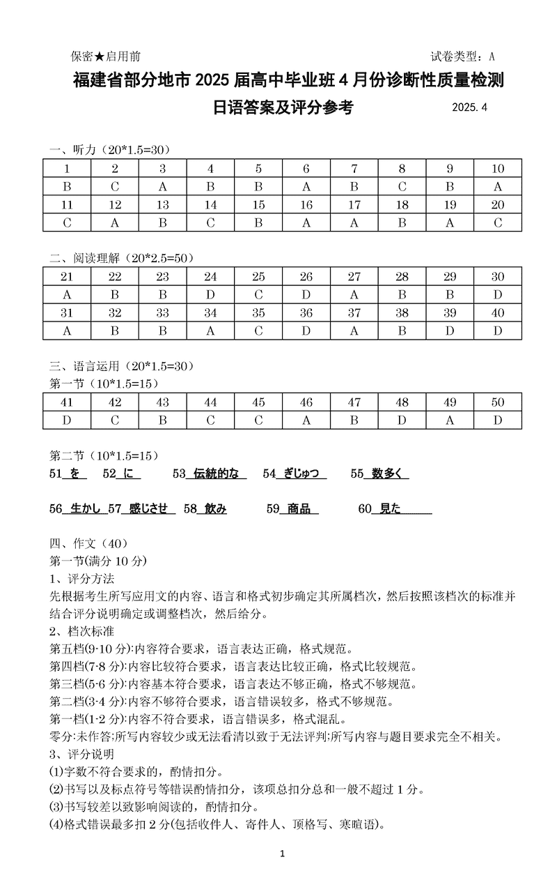 福建2025年4月高三九市联考日语试题及答案 时间:2025-04-12 福建 英语试题 福建2025年4月高三九市联考日语考试已于近日开考,为方便考生考后及时查看考试情况,查漏补缺、弥补不足,本文整理了试题答案解析相关信息! 汇总:福建2025年4月高三九市联考试题及答案汇总 日语试题及答案解析