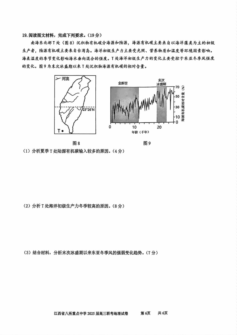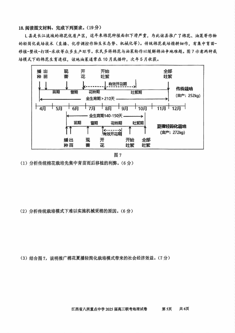 江西省八所重点中学2025届高三4月联考地理试题及答案