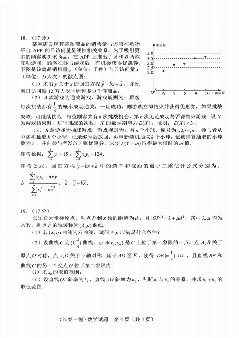 吉林长春2025届高三下学期质量监测(三)数学试题及答案