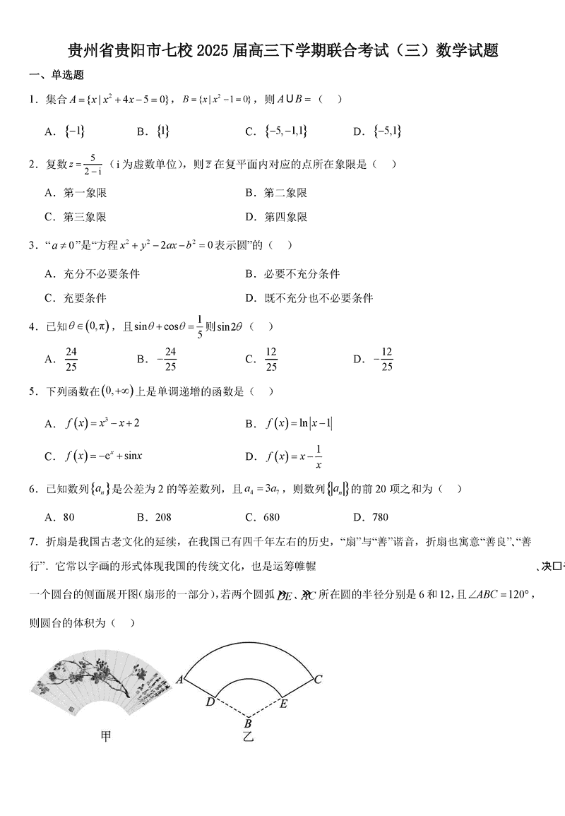 贵阳市七校2025届高三下学期联考(三)数学试题及答案
