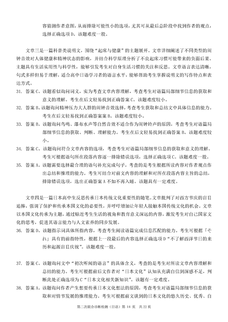 重庆康德二诊2025年高三第二次联合诊断日语试题及答案